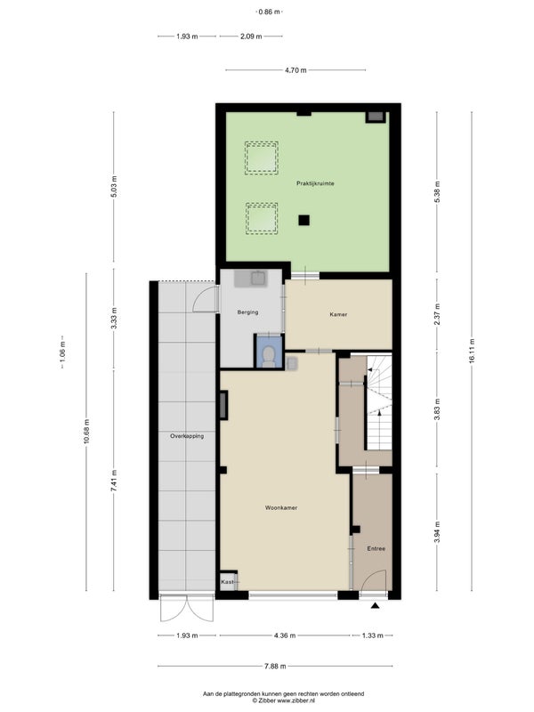 - De tussenwoning heeft een woonoppervlakte van 291 m² en beschikt over 7 kamers, waarvan 4 slaapkamers;