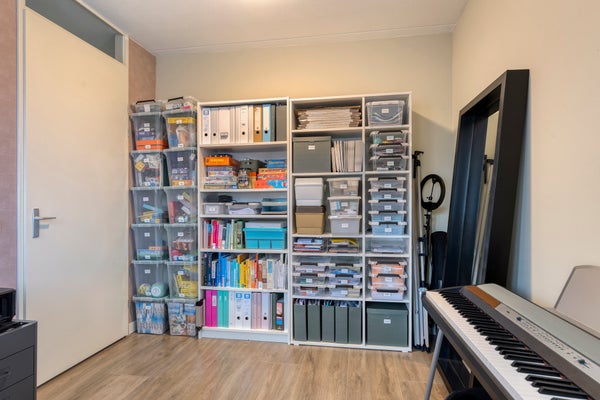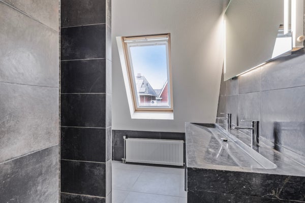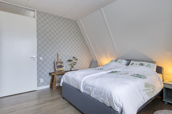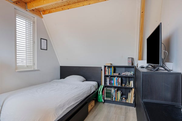 Boven vind je drie slaapkamers. De master bedroom achteraan is ruim en voorzien van een inbouwkast. De badkamer is praktisch met een inloopdouche en dubbele wastafel. De tweede verdieping biedt een vierde slaapkamer en extra bergruimte.