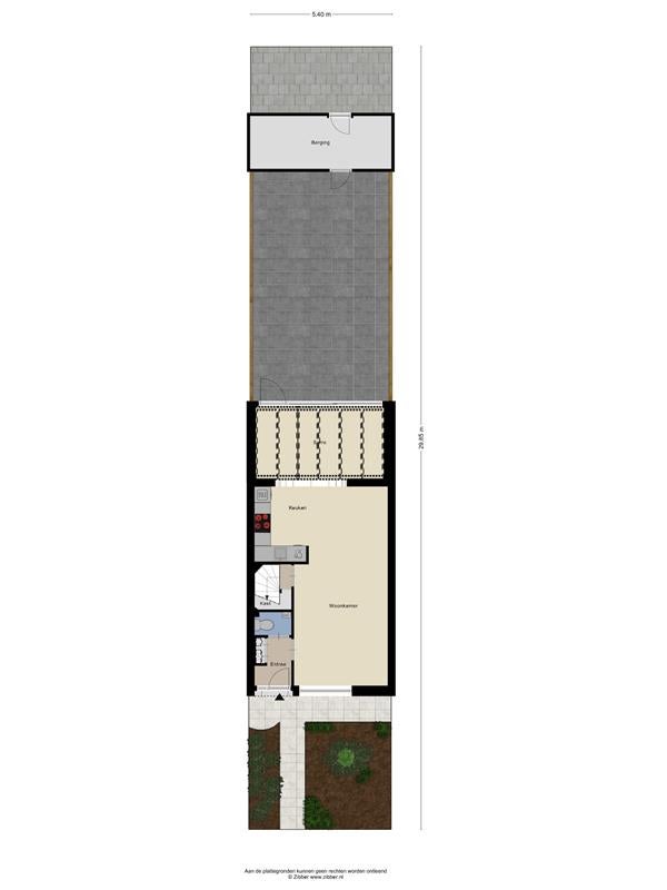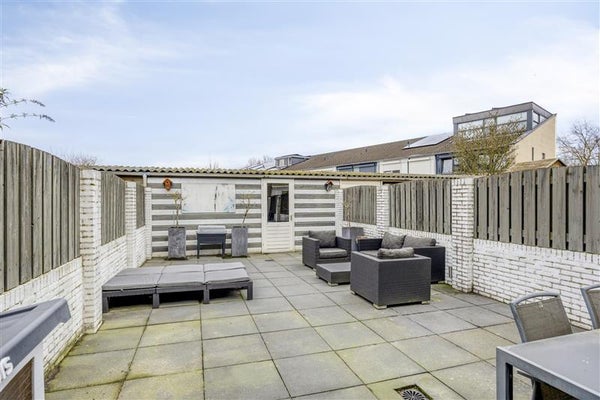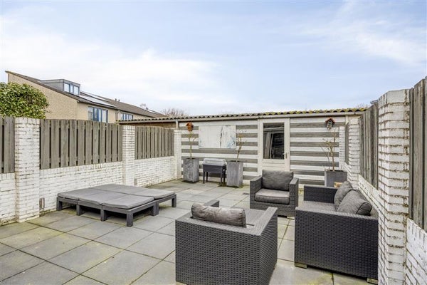 - Diepe en onderhoudsarme tuin: privacybiedende achtertuin met een ruime berging en achterom.