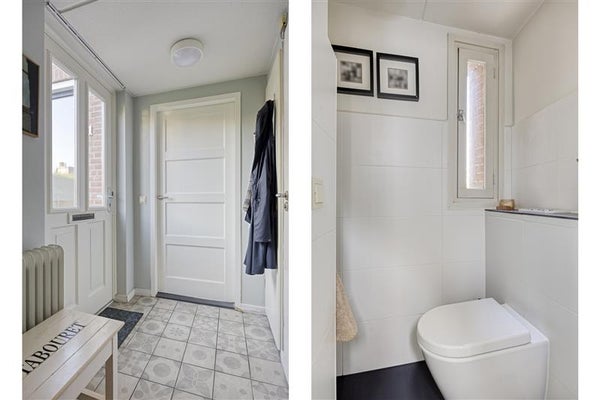 Een gevoel van thuiskomen. Dat beschrijft dit huis misschien wel het beste. Zodra je binnenkomt in de ruime hal, voel je direct de charme en het praktische gemak van deze woning. Hier vind je alles wat een gezin zich kan wensen én meer. De hal geeft toegang tot een inpandige berging (met wasmachine-aansluiting en handige vliering), een moderne toiletruimte met fonteintje en een meterkast.