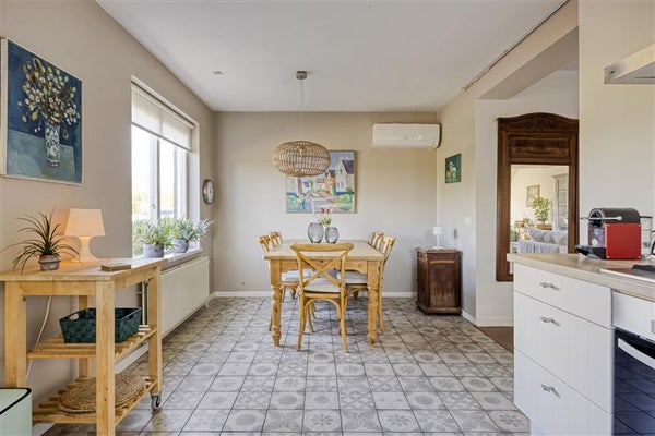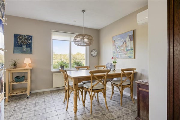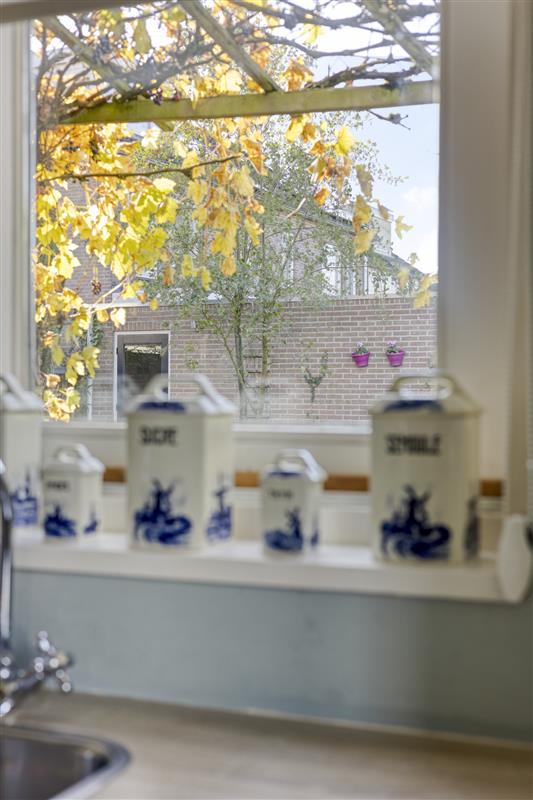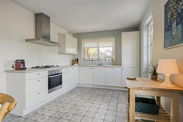 De grote woonkeuken is een absolute eyecatcher! Ideaal voor iedereen die van koken én gezelligheid houdt. Het hoekopgestelde keukenblok met inbouwapparatuur biedt alle ruimte om de lekkerste maaltijden klaar te maken. Van hieruit heb je toegang tot de zijtuin en geniet je van prachtig uitzicht op het groen. Zie je al voor je hoe je hier met familie of vrienden geniet van een kop koffie of een glaasje wijn?