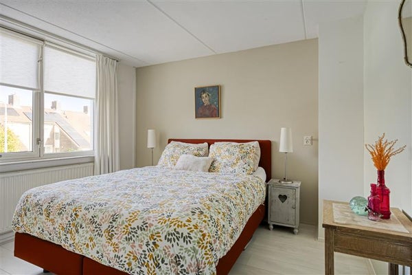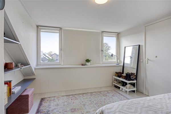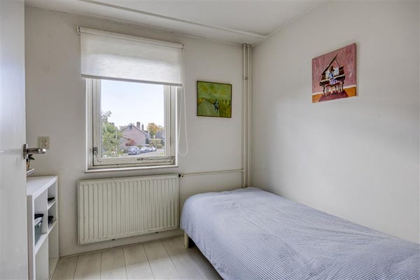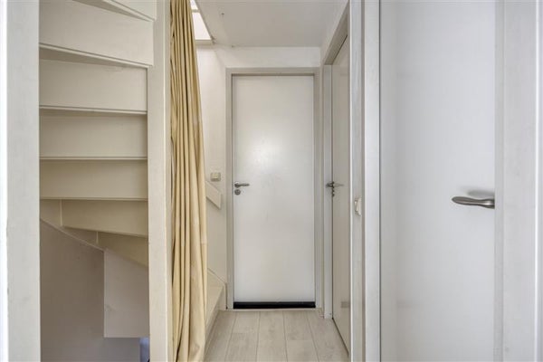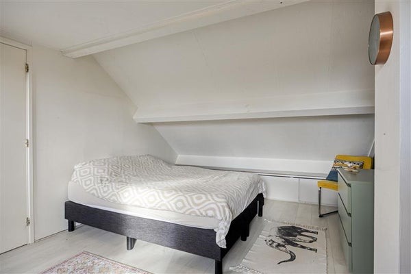 De tweede verdieping biedt nóg meer woonplezier. Een vaste trap brengt je naar de voorzolder, voorzien van bergruimte achter de knieschotten en een CV-installatie. De royale zolderkamer is werkelijk indrukwekkend: met een laminaatvloer, dakkapel én rolluiken is dit een multifunctionele ruimte waar je prima een thuiswerkplek, hobbykamer of extra slaapkamer van kunt maken. En dankzij de extra opslagruimte achter de knieschotten houd je het hier altijd netjes.