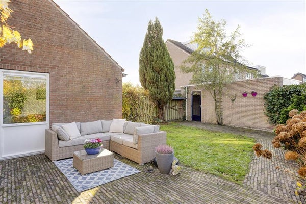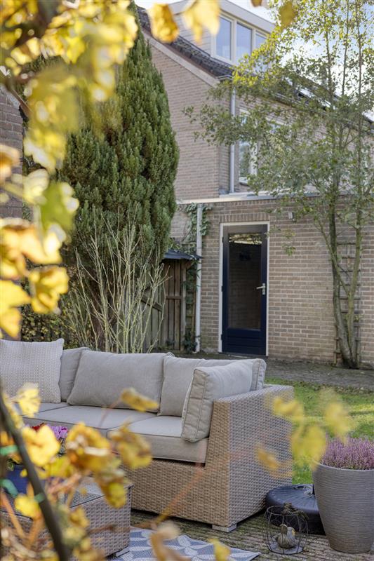 Stap naar buiten via de schuifpui of achterdeur en ontdek de zuidelijk gelegen tuin. Hier zijn alle ingrediënten aanwezig om het ultieme buitenleven te ervaren. De fraai aangelegde bestrating, het groene gazon en de mooie, met blauwe regen begroeide pergola geven deze tuin een bijna romantische sfeer. Of je nu je dag start met een kop koffie in de zon, een barbecue organiseert met vrienden of simpelweg geniet van het buitenleven—hier wil je nooit meer weg.