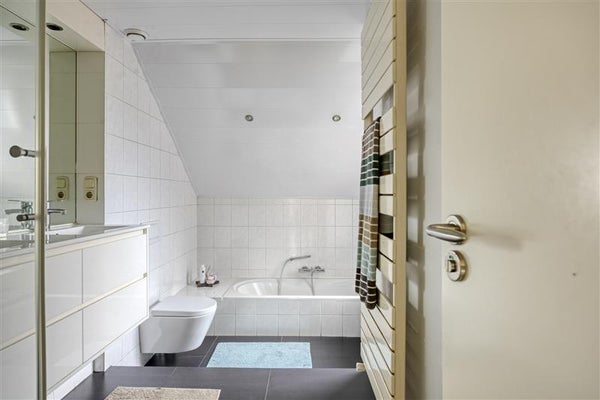 Op de eerste verdieping vind je drie ruime slaapkamers. Alle kamers zijn afgewerkt met een moderne laminaatvloer, waardoor de ruimtes een strakke, eigentijdse uitstraling hebben. Ook de badkamer is een plaatje: hier waan je je in een luxe spa, compleet met ligbad, douchecabine, dubbele wastafel, designradiator, spotjes en een tweede toilet. Deze ruimte is écht van alle gemakken voorzien!