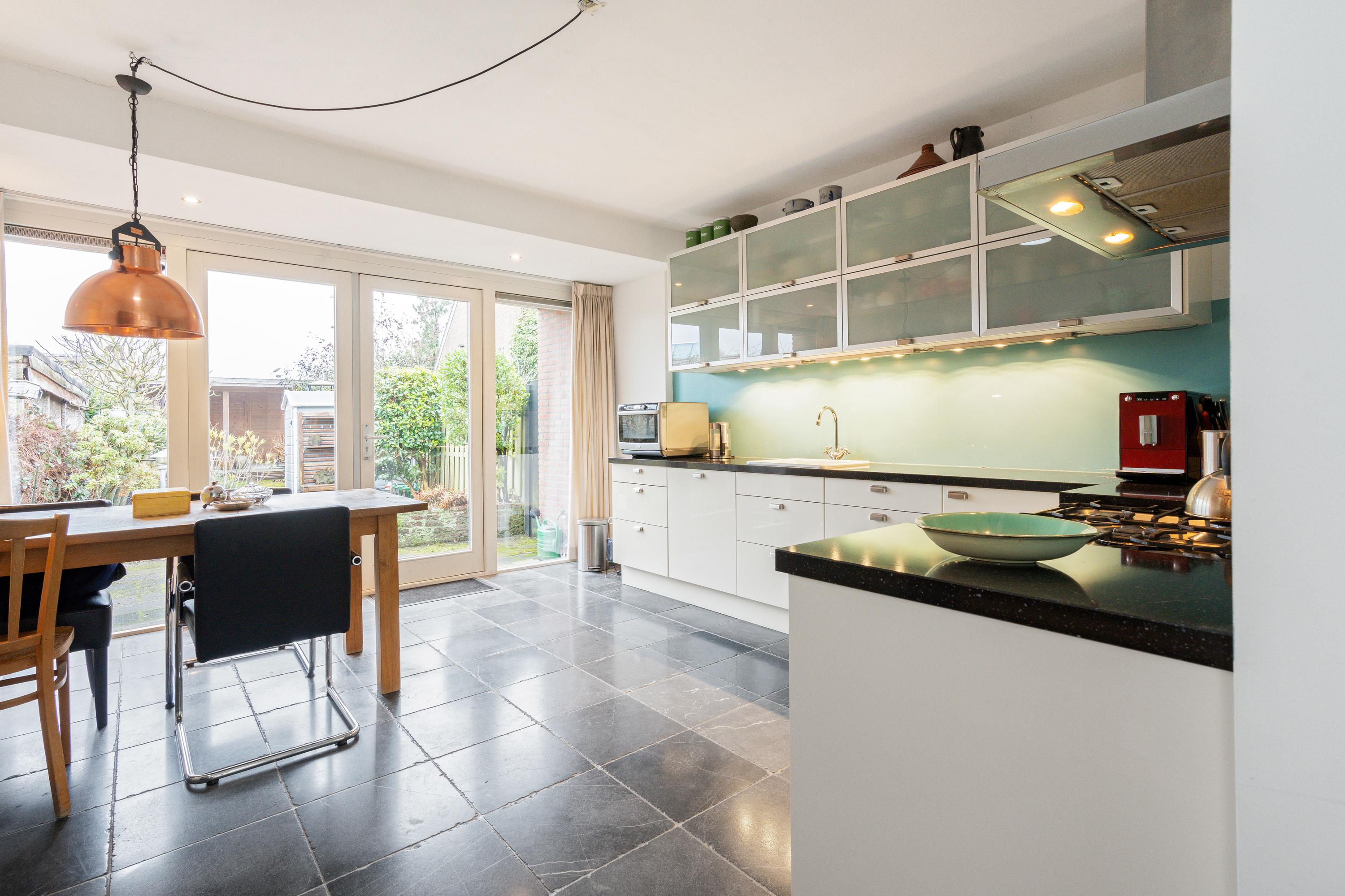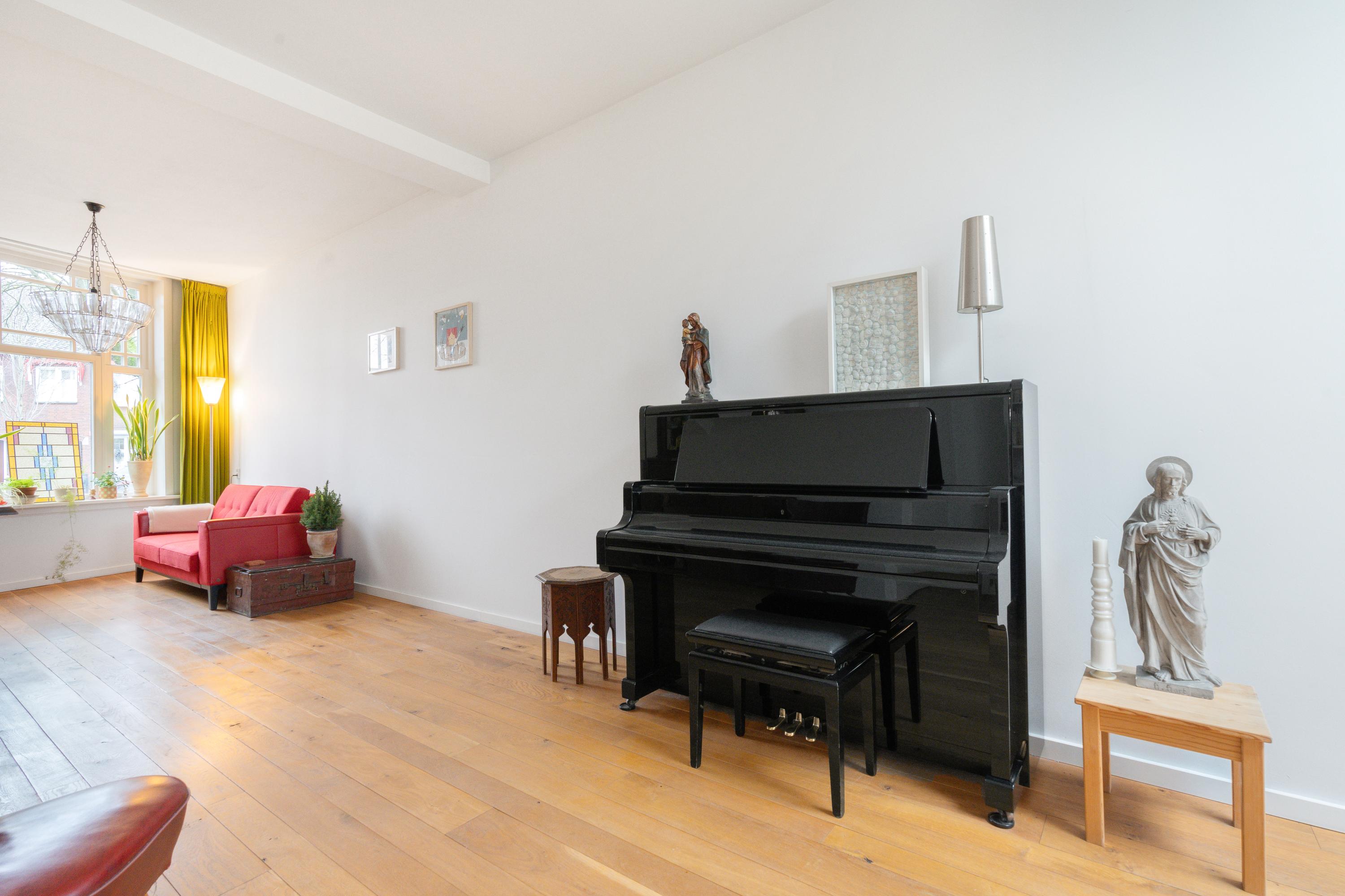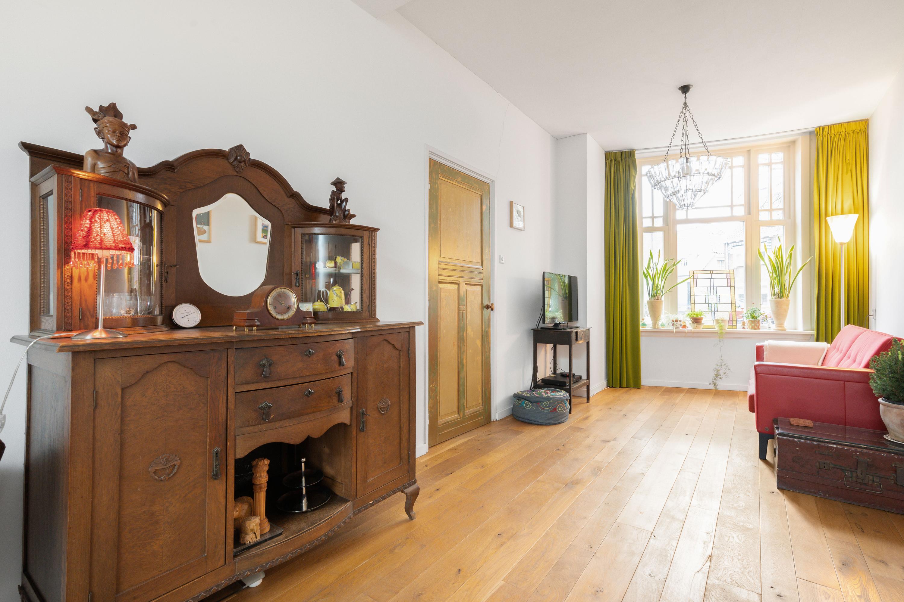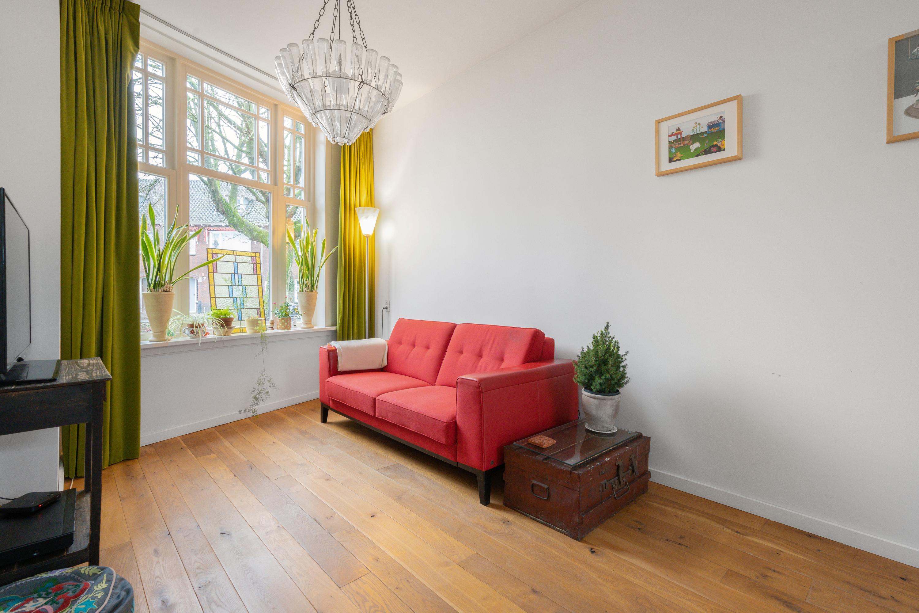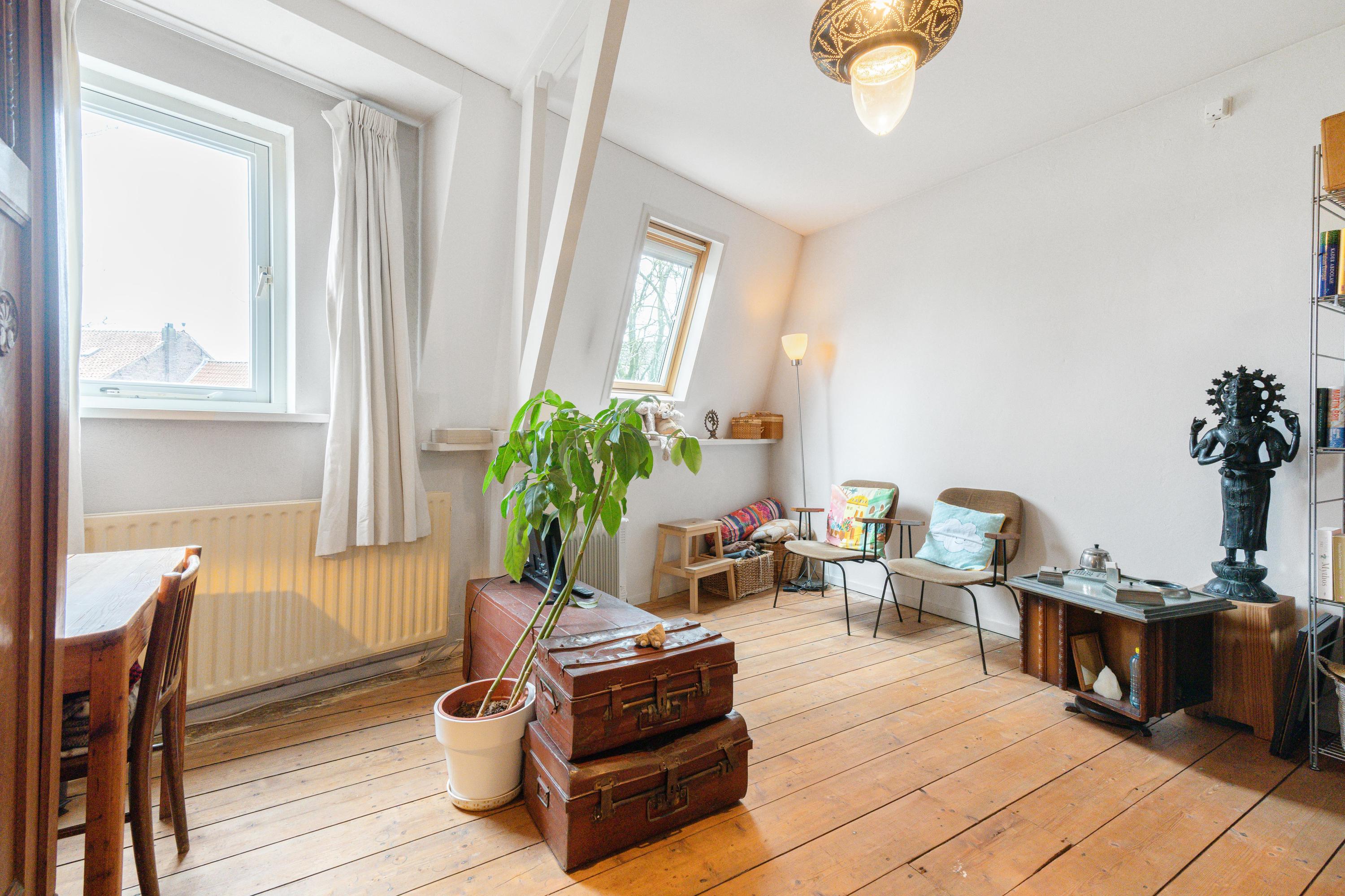 Deze sfeervolle two-under-one-roof woning uit 1906 heeft een woonoppervlakte van ca. 118 m2 en een perceel van ca. 200 m2. De woning, gelegen aan een groen pleintje, biedt een rustige sfeer met een diepe tuin. De naar achteren uitgebouwde keuken staat in contact met de tuin en is gemoderniseerd en vernieuwd. De benedenverdieping is voorzien van vloerverwarming en heeft hoge plafonds met veel lichtinval. De eerste verdieping biedt toegang tot twee slaapkamers en de zolderverdieping, nu in gebruik als hobbyruimte. De badkamer is licht en modern, terwijl de tuin met een grote veranda en diverse beplanting perfect is voor natuurliefhebbers. De woning is goed geïsoleerd en heeft een energielabel D.