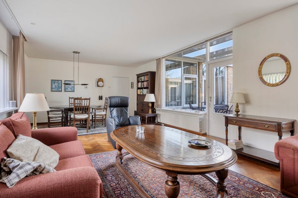 In de groene Auteurswijk, aan de rand van het bos, ligt deze geschakelde bungalow met garage, omringd door natuur en rust. Met een woonoppervlak van 124 m² biedt de woning een ruime woonkamer van circa 38 m² en een keuken van 11 m², beide verleend aan de patiotuin. Deze tuin van circa 6 x 7,50 meter brengt binnen en buiten samen. De bungalow beschikt over twee slaapkamers van 12 en 18 m², een hobbykamer van 15 m², en een verzorgde badkamer. Daarnaast is er een garage en een royale voor- en zijtuin van 200 m². Voorzien van 22 zonnepanelen en een vernieuwde cv-ketel, biedt de woning comfort en energiezuinigheid. Winkels en scholen zijn in de nabijheid, waardoor rust en bereikbaarheid samenkomen.