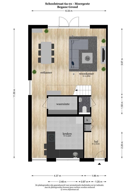 - Aanwezig (89 m², gelegen op het noordoosten)