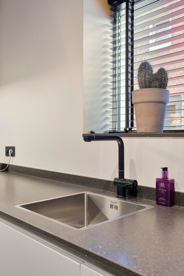 De keuken is functioneel ingericht en biedt voldoende werk- en bergruimte. Met enkele aanpassingen kan deze ruimte eenvoudig worden omgetoverd tot een moderne woonkeuken, passend bij uw persoonlijke woonwensen.