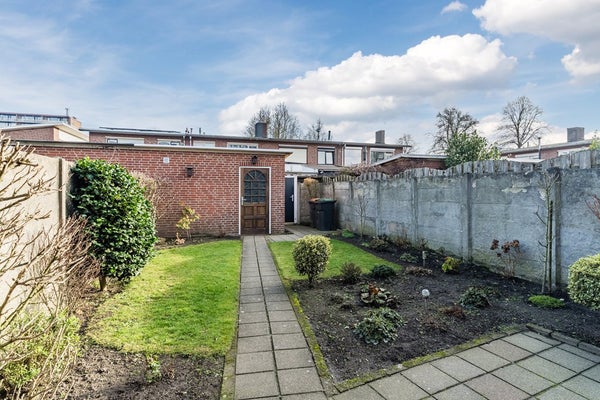 De achtertuin van 66 m² is een heerlijke plek om te relaxen in het zonnetje, kids veilig buiten te laten spelen of gezellig met vrienden te barbecueën.