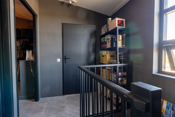 Op de tweede verdieping bevinden zich nog twee royale slaapkamers en een overloop met wasruimte en aansluitingen voor wasapparatuur.