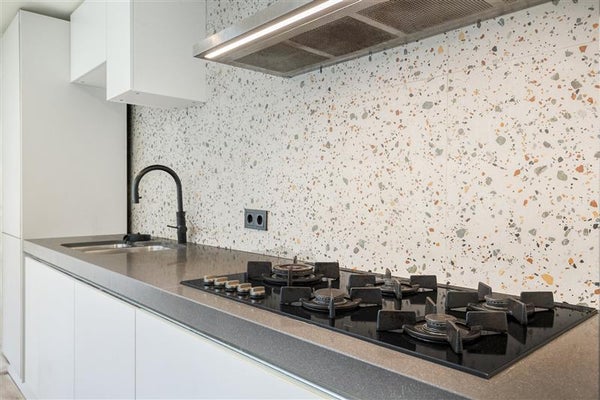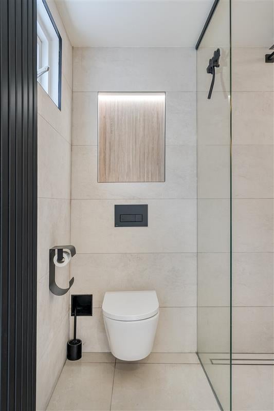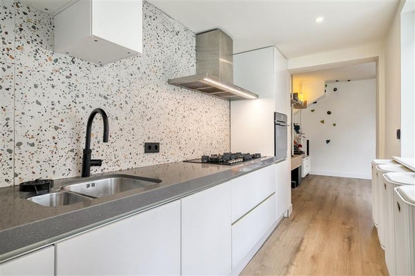 Verder naar de keuken, die aan de achterzijde van de woning ligt. Deze moderne ruimte is compleet uitgerust met hoogwaardige inbouwapparatuur, zoals een oven, quooker, vaatwasser en gaskookplaat. Stoofpotten, pastaschotels of zondagse pannenkoeken: alles wordt hier een feestje om te maken. Achter de keuken vind je de vernieuwde badkamer. Hier tref je een moderne uitstraling met een grote inloopdouche, een elegant wastafelmeubel en een toilet. Alles is zo ontworpen om jouw dagelijkse routines nét wat fijner te maken.