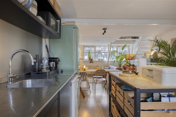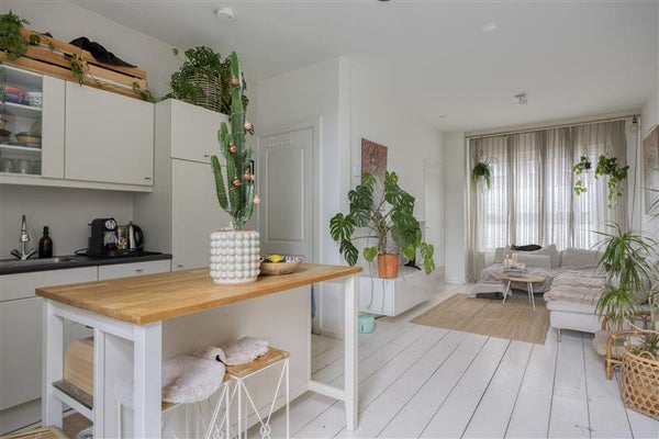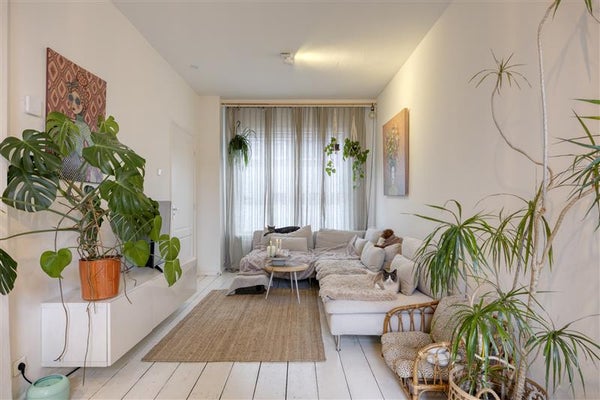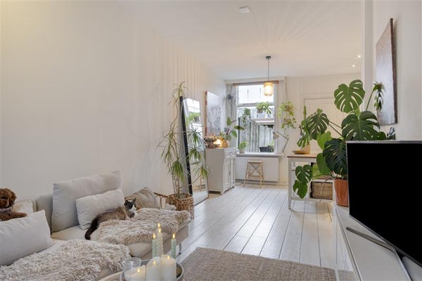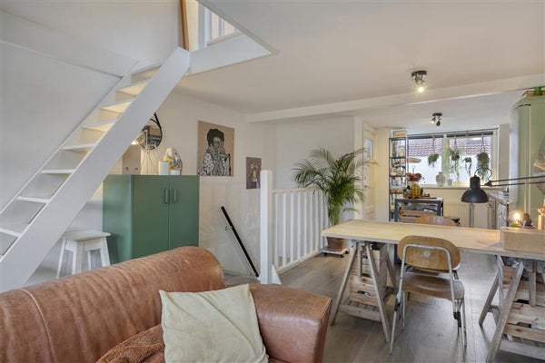 Bij het betreden van deze charmante woning voel je direct de warme sfeer en de knusse uitstraling, gecombineerd met een moderne touch. In de hal op de begane grond word je welkom geheten door het authentieke jaren ’30 karakter. Vanuit hier stap je de ruime en lichte woonkamer in, waar grote raampartijen zorgen voor een fijne hoeveelheid daglicht. De houten vloer benadrukt de charme van deze ruimte. Met een comfortabele bank, een relaxte loungestoel en een gezellige eettafel wordt dit dé plek waar jij én je vrienden of familie samenkomen.