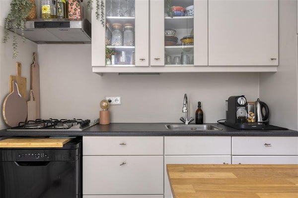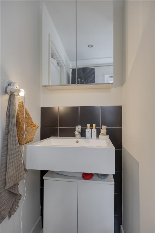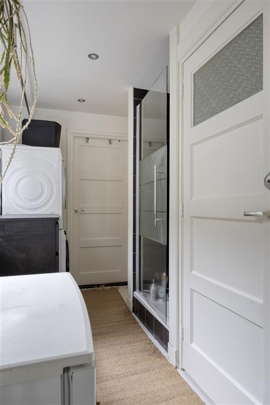 Grenzend aan de woonkamer vind je de nette open keuken in een praktische wandopstelling. Hier heb je alles bij de hand: voldoende opbergruimte en plek om je culinaire creativiteit de vrije loop te laten. Zie je jezelf al staan, terwijl je in een ontspannen sfeer een heerlijke maaltijd bereidt? En terwijl het buiten nog licht is, loop je vanuit de gang eenvoudig door naar de achtertuin. Op de begane grond is een douche en toilet in de bijkeuken gesitueerd.
