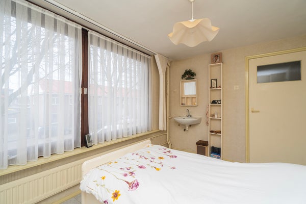 Dit eengezinswoning, gebouwd in 1961, ligt aan een rustige weg in een woonwijk. De woning heeft een woonoppervlakte van 97 m², verdeeld over twee woonlagen en een zolder. Met vijf kamers, waaronder vier slaapkamers, biedt het genoeg ruimte voor een gezin. De woonkamer van 22 m² is praktisch ingericht. Er is een badkamer met wastafel en douche. De achtertuin van 52 m² op het oosten geeft toegang via een achterom, en bevat een vrijstaande stenen berging met elektra. Verwarming gebeurt via een Remeha Tzerra c.v.-ketel uit 2017. De woning is gedeeltelijk voorzien van dubbel glas, energieklasse D. Het perceel van 117 m² biedt openbaar parkeermogelijkheden in de omgeving.