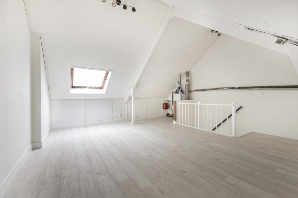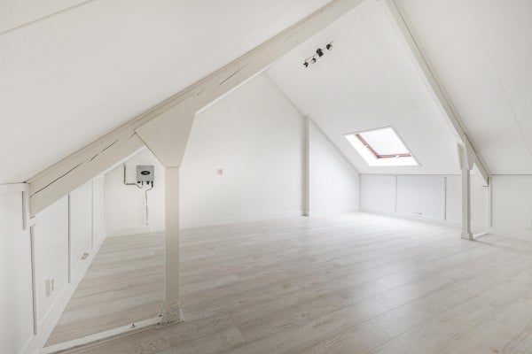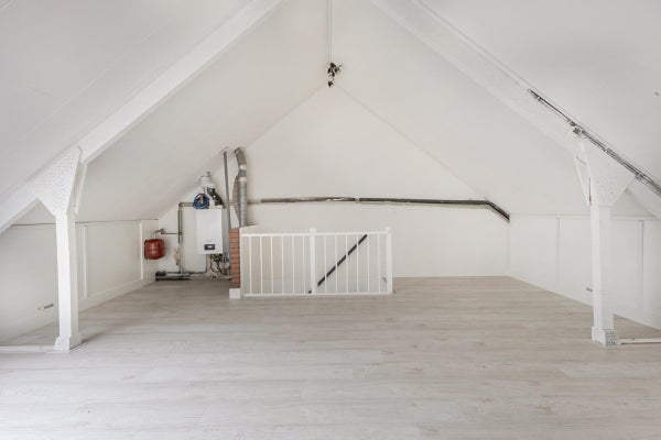 De tweede verdieping is een enorm ruime slaapkamer met veel mogelijkheden. Deze kamer is netjes afgewerkt, voorzien van opbergruimte aan de zijkanten en de HR-ketel. Perfect als master bedroom of als royale kinderkamer.
