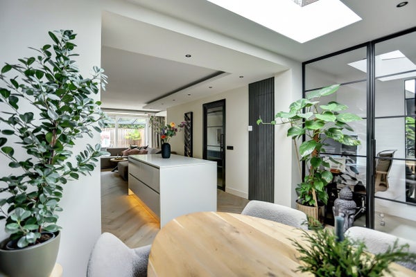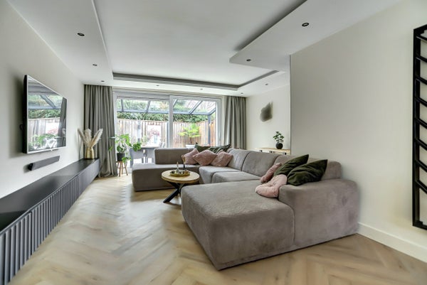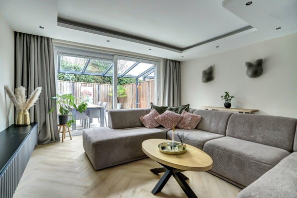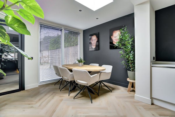 Vanuit de hal kijk je door de stalen deur zo de woning in en is meteen al te zien dat het hier om een prachtige woning gaat.