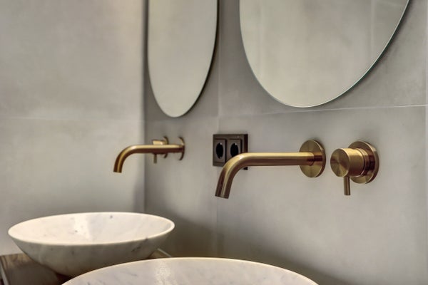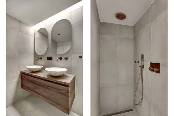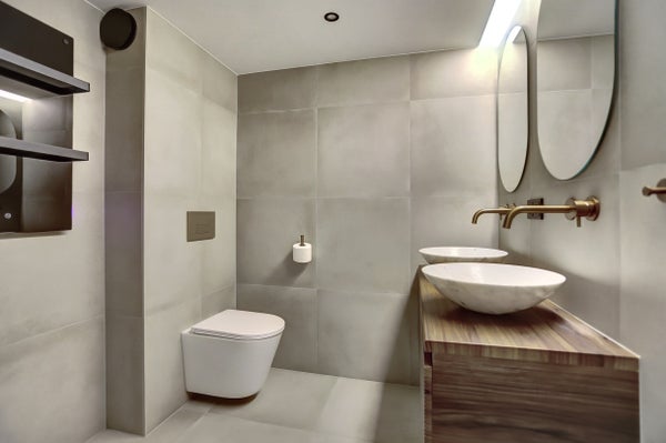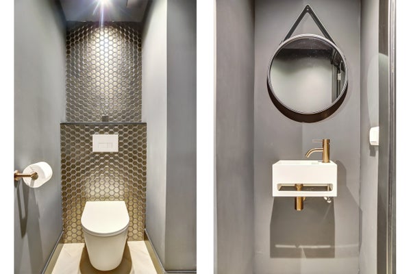 Via een tussenhal is het toilet bereikbaar, ook deze ruimte is fraai en strak afgewerkt.