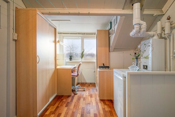 Stap binnen in de entree/hal en daarvan uit kun je naar het toilet, de trap op naar de eerste verdieping of doorlopen naar de gezellige woonkamer waar licht en comfort samenkomen. Vanuit de woonkamer loop je naar de gesloten keuken, praktisch ingedeeld en klaar voor al je kookavonturen.
