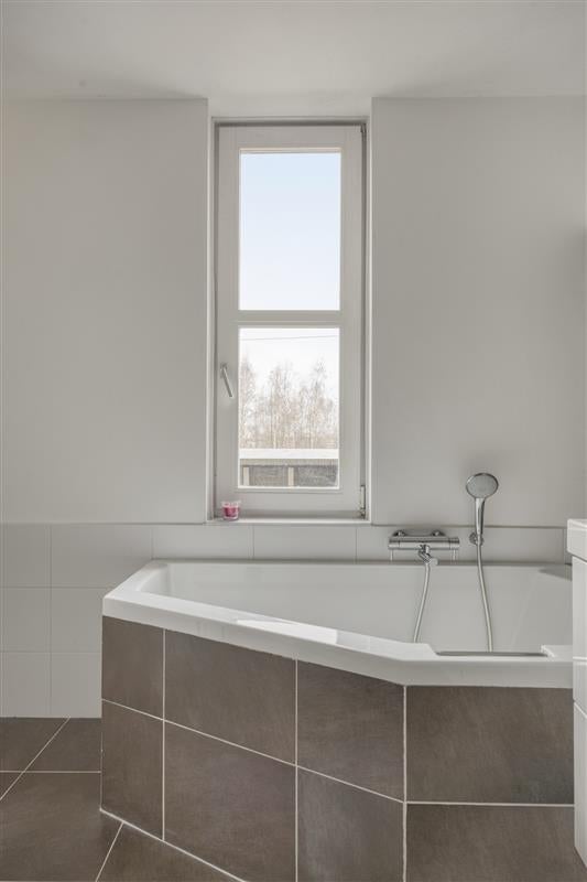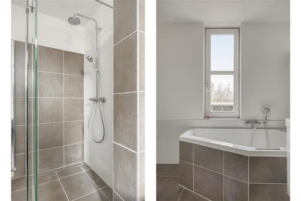 De eerste verdieping biedt veel comfort en ruimte. Hier vind je twee slaapkamers, waarvan de master bedroom is ontworpen door twee kamers samen te voegen. Het resultaat? Een riante kamer die als een luxe suite aanvoelt. De tweede slaapkamer is perfect als kinder-, logeer- of werkkamer. De chique badkamer straalt pure luxe uit door het ligbad met jets, een moderne inloopdouche en een tweede toilet.