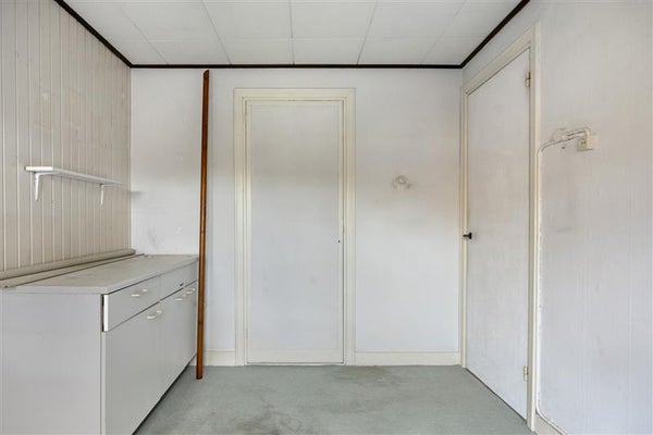 Aan de achterzijde bevindt zich de aansluiting van de CV ketel met toegang middels een loopdeur naar de achtertuin en de toegang naar het toilet en badkamer voorzien van een douche.