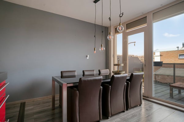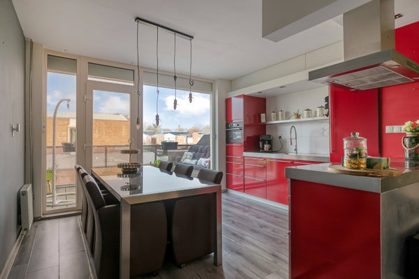 De eerste verdieping fungeert als leefverdieping en beschikt over een lichte royale woonkamer voorzien van een laminaatvloer aan de voorzijde en een nette open luxe leefkeuken aan de achterzijde. Vanuit de keuken is er toegang tot het balkon/dakterras, waar u heerlijk buiten in de zon kunt zitten.