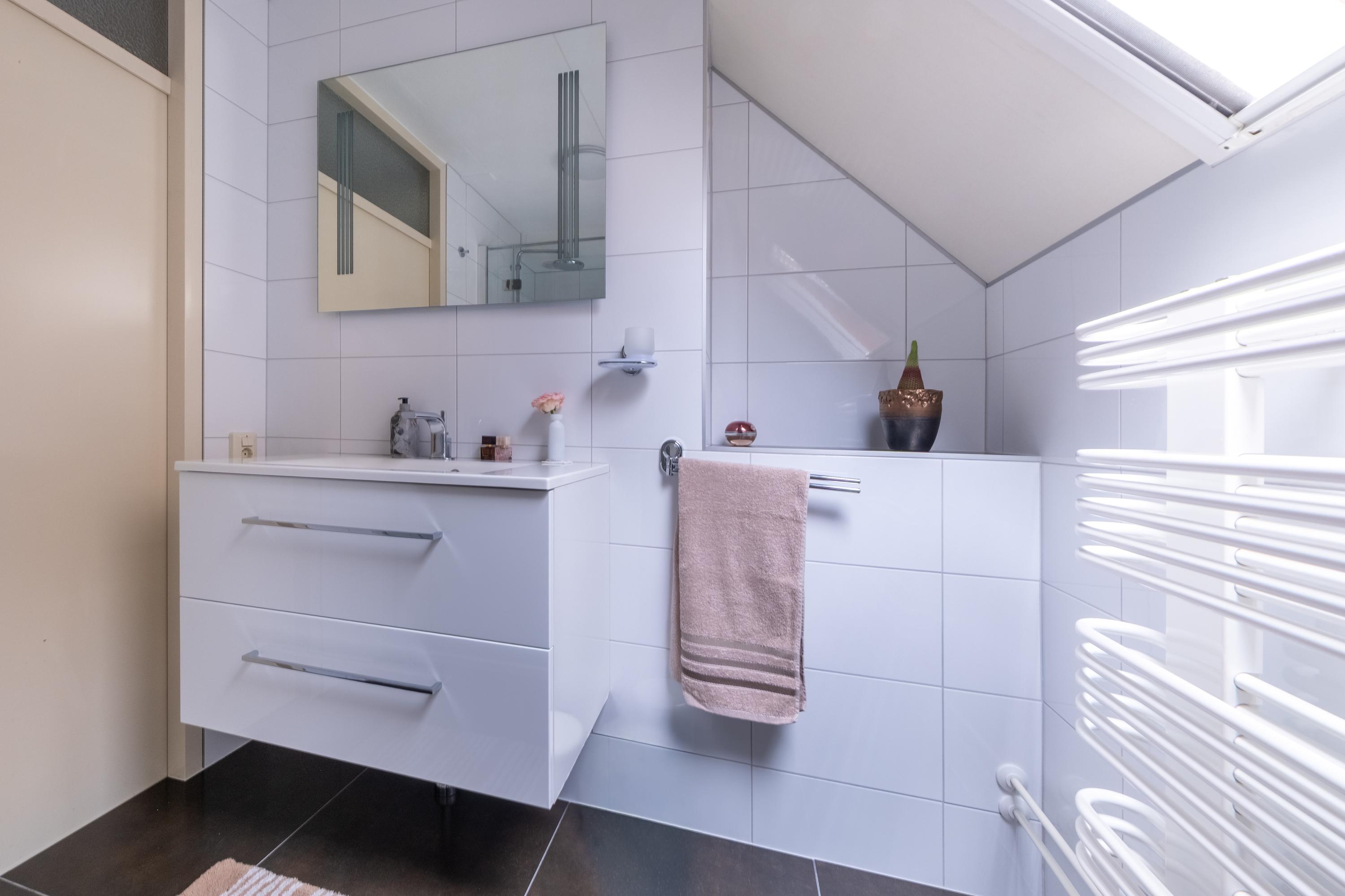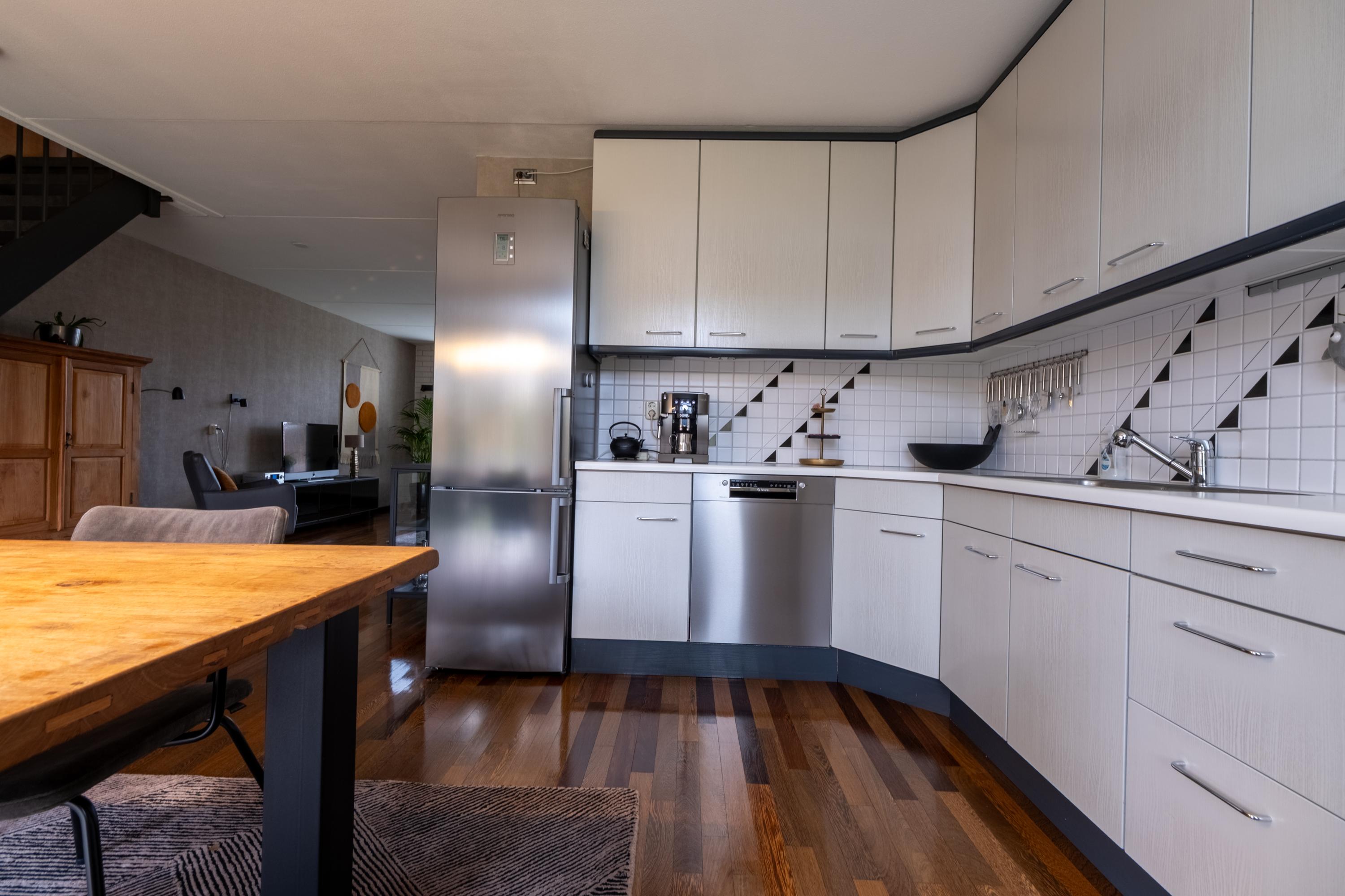 Deze keurige 2/1-kapwoning, ontworpen door een architect, heeft Energielabel A. Bij binnenkomst in de hal gaat u naar het woongedeelte, waar de woonkamer aan de voorzijde en de keuken aan de tuinzijde zijn geplaatst, met een totale oppervlakte van ongeveer 44 m². De U-vorm zorgt voor een gescheiden zit- en eetgedeelte. De keuken is uitgerust met een gaskookplaat, oven, vaatwasser en een losse koel-vriescombinatie. De garage van ca. 2,89 bij 6,04 m heeft een vliering en een loopdeur naar de tuin. Boven bevinden zich drie slaapkamers van ca. 7, 10 en 14 m², en een moderne badkamer uit 2012. De tweede verdieping biedt extra ruimte van ca. 16 m². De woning staat op een kavel van 315 m² met een verzorgde tuin en privacy. De rustige ligging nabij voorzieningen en goede verbindingen maakt dit tot een aantrekkelijke woonplek.