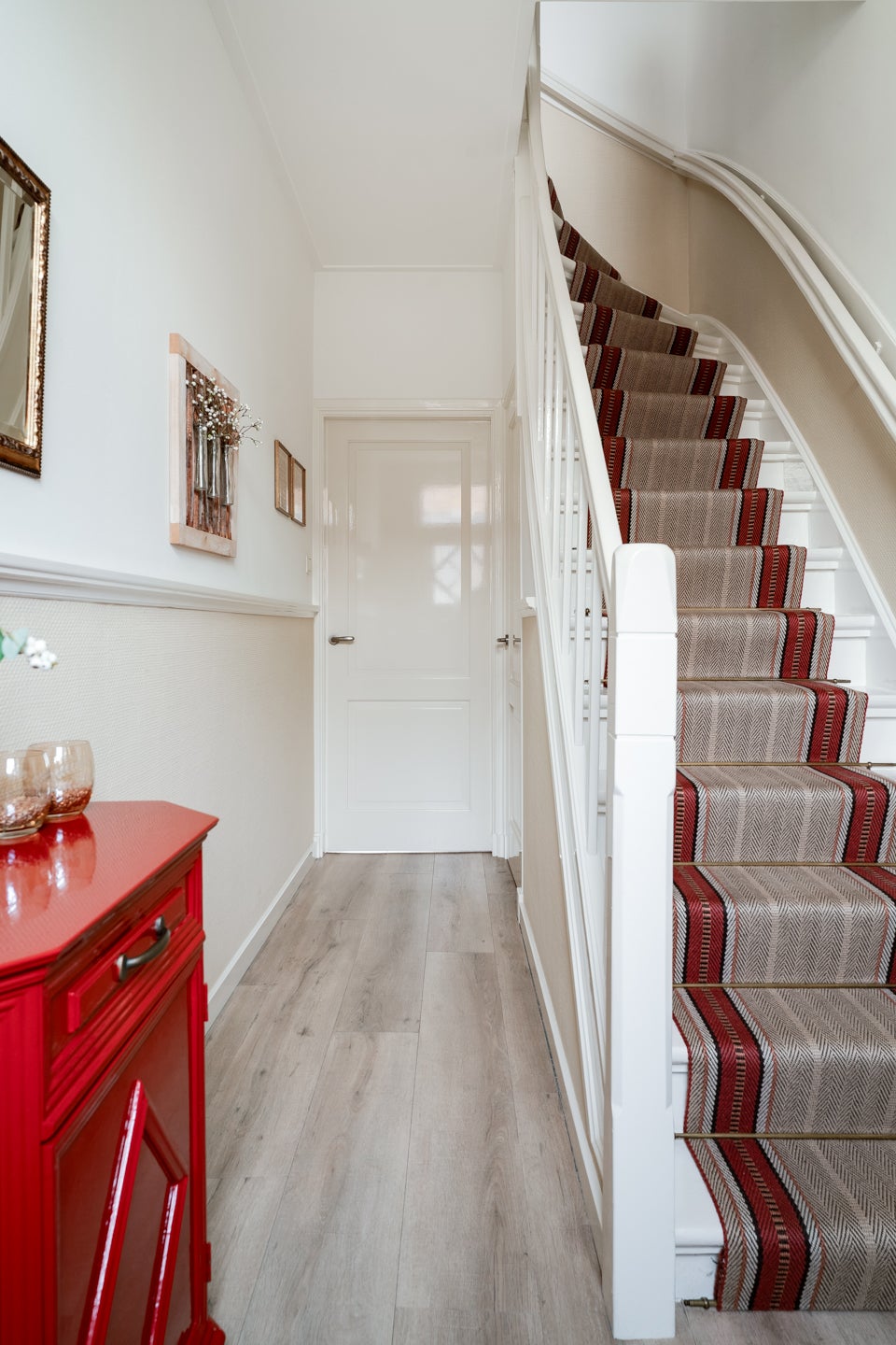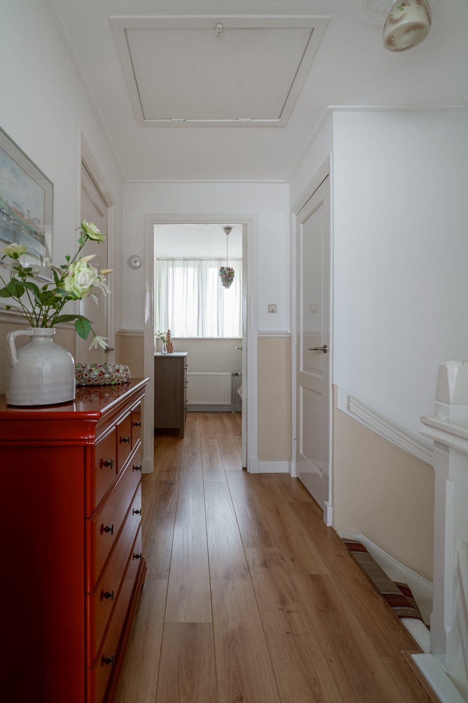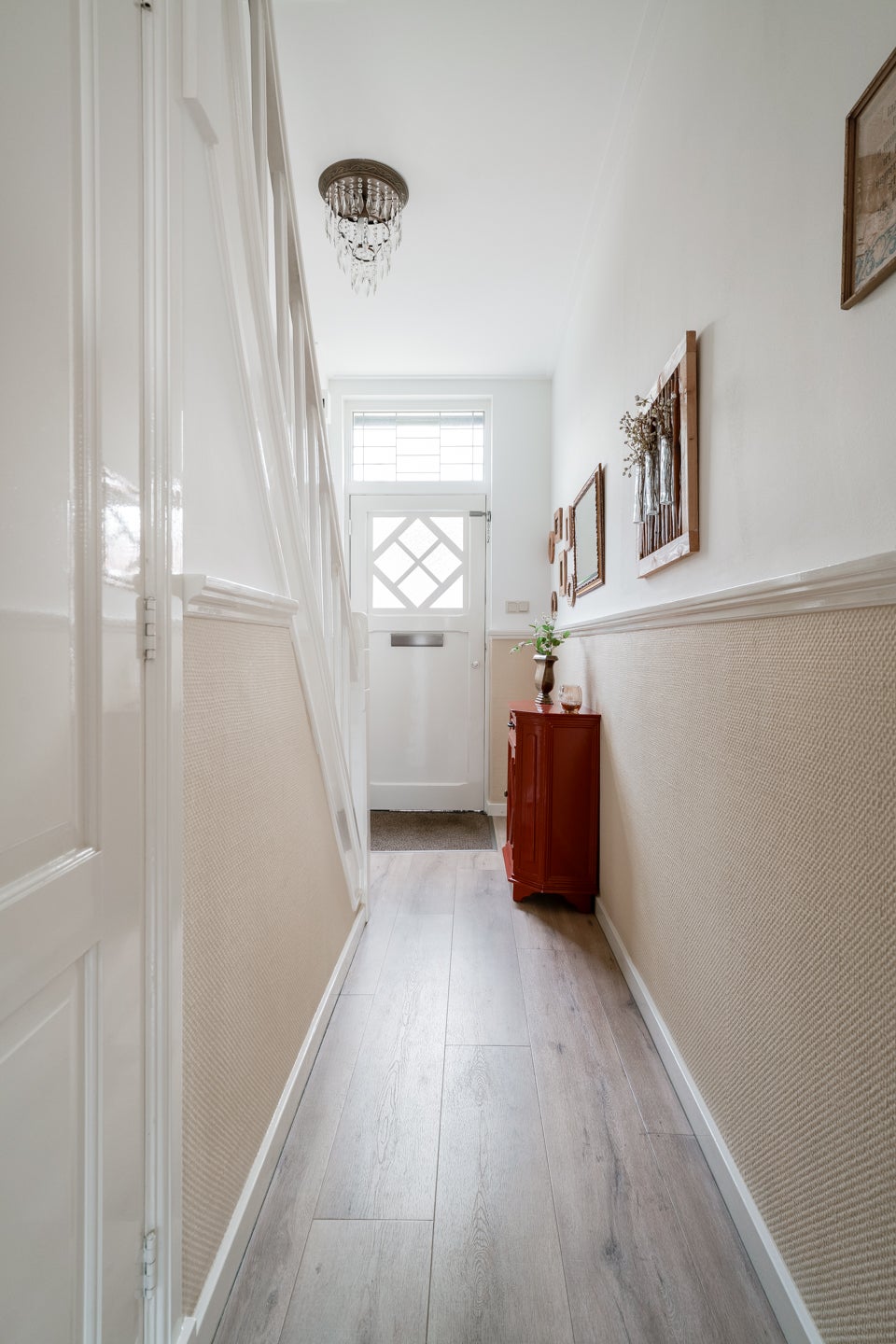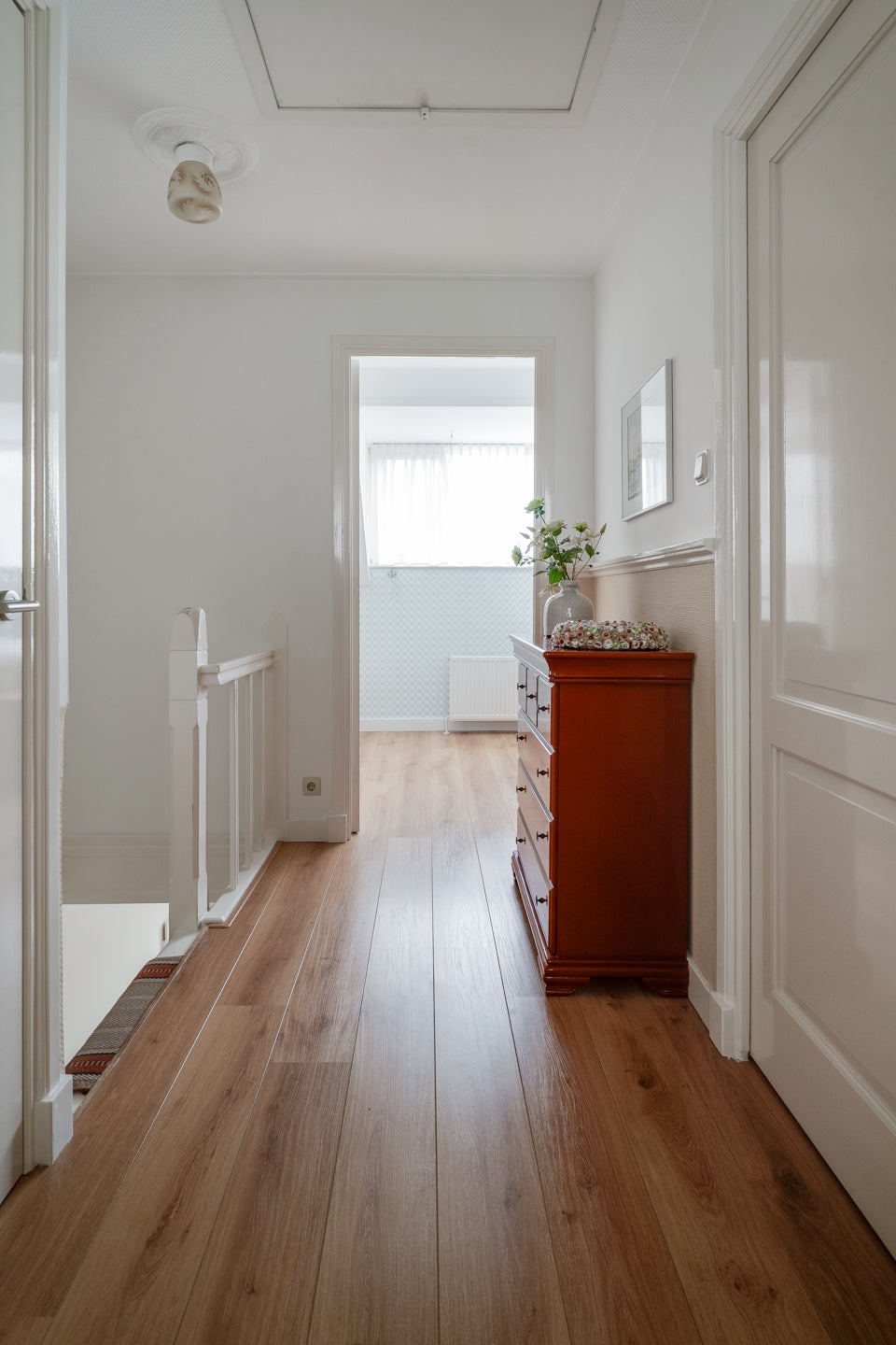Bij binnenkomst kom je in een hal met hoge plafonds en stijlvolle details, leidend naar een sfeervolle woonkamer met gashaard. Op de eerste verdieping zijn er drie ruime slaapkamers en een luxe badkamer. Voorzieningen zoals rolluiken, airconditioning en een zolder voor extra ruimte maken het geheel compleet.