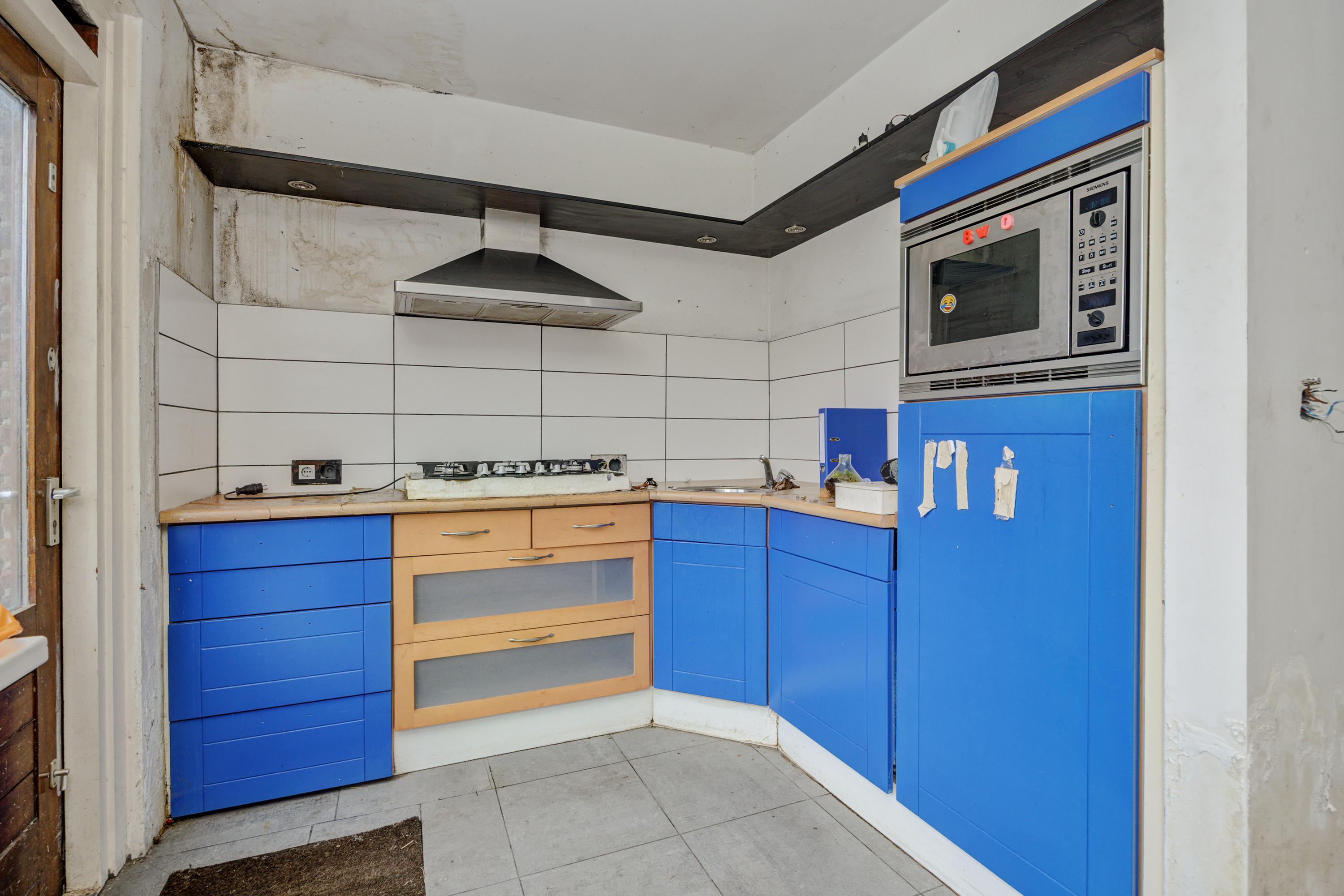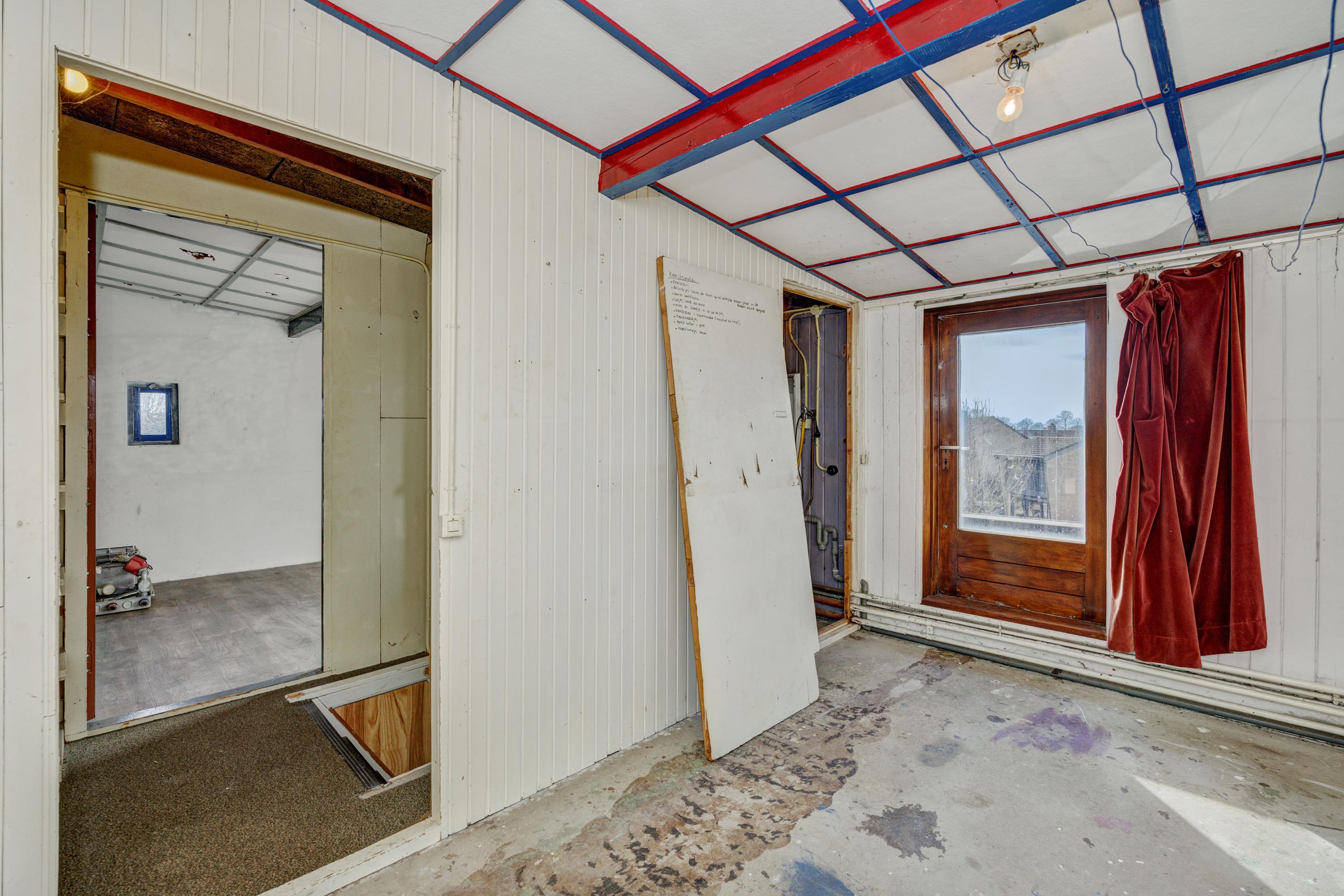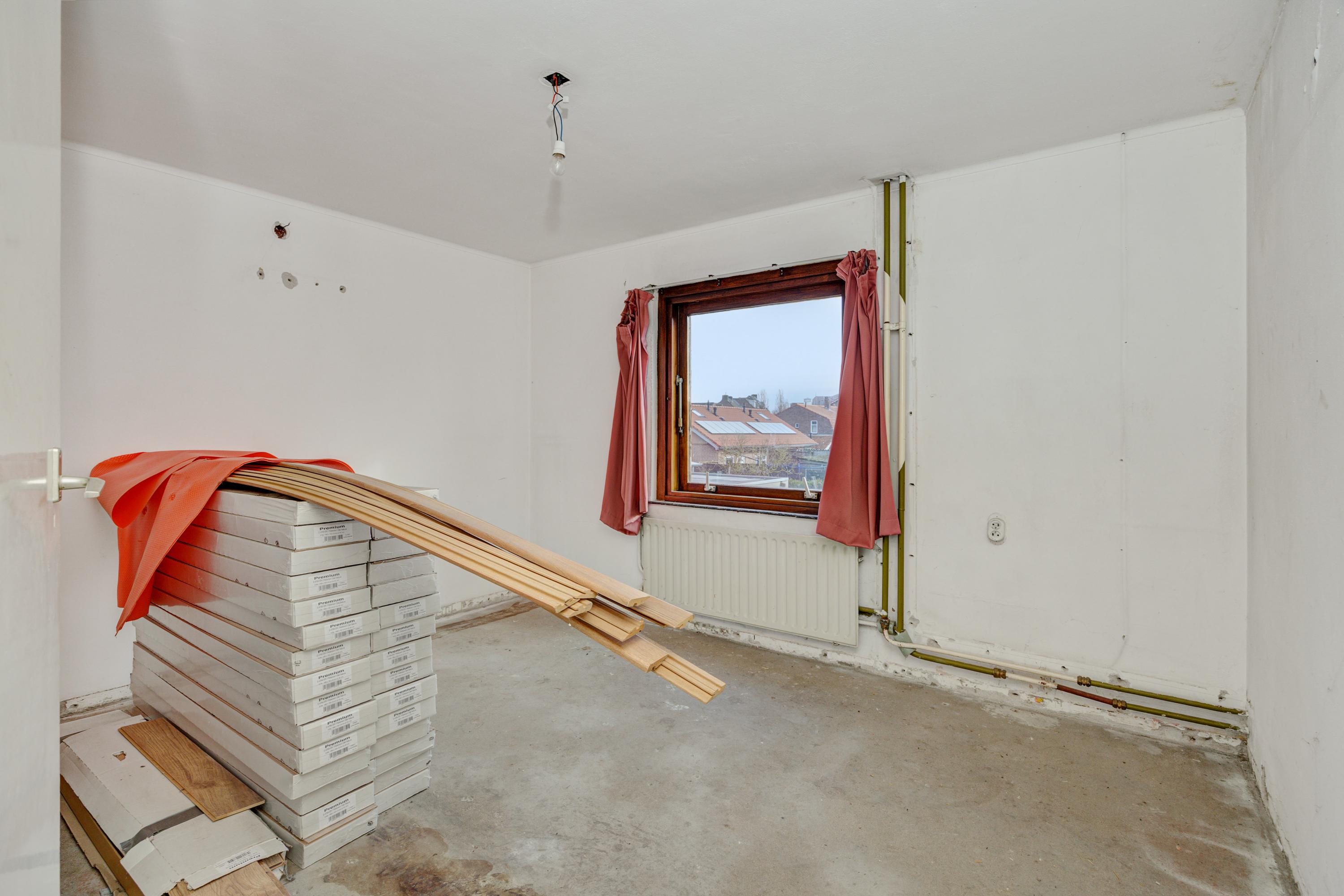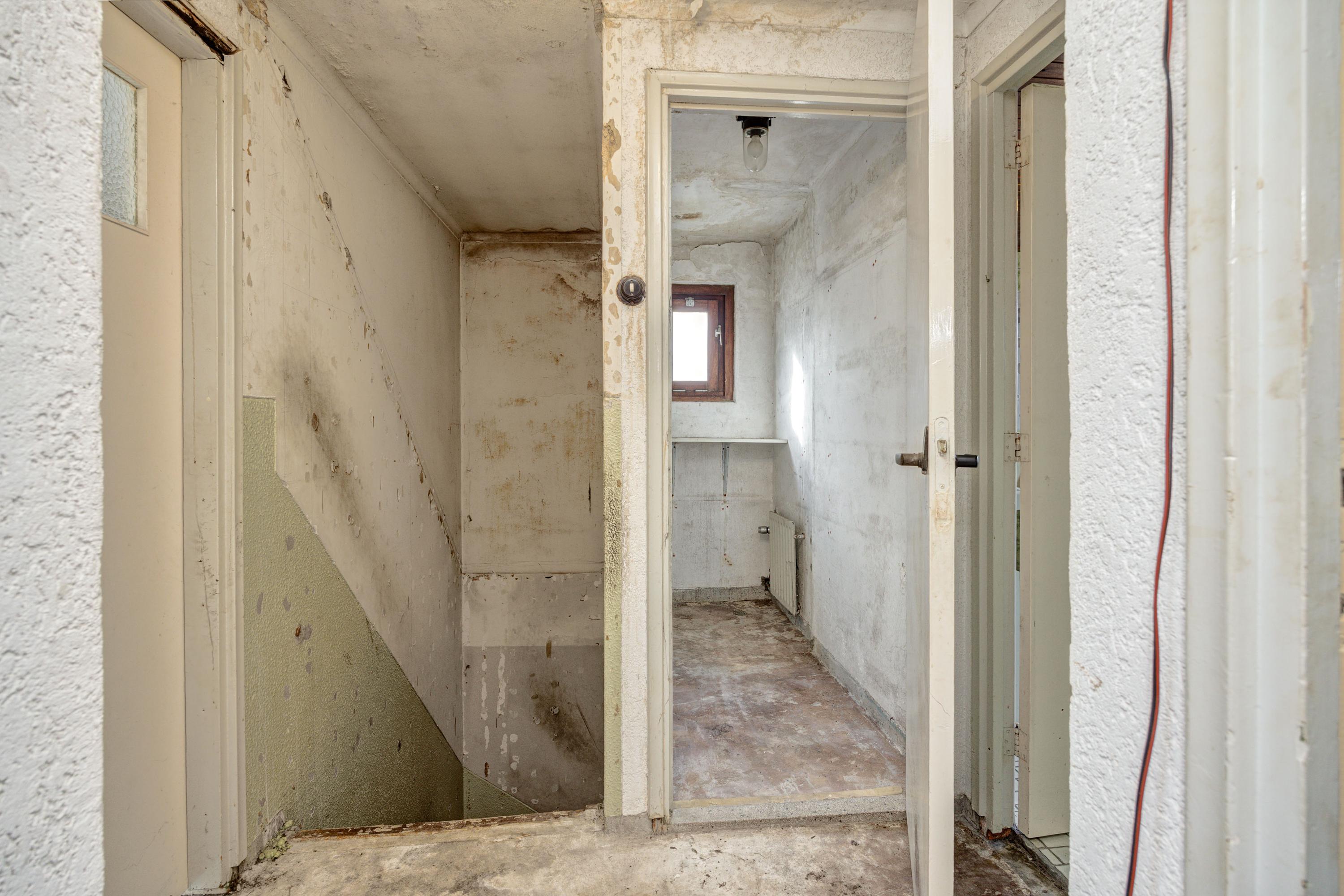 De tweede verdieping heeft 2 slaapkamers met een plat dak geschikt voor een dakterras. De woning is momenteel niet bewoond en heeft achterstallig onderhoud.