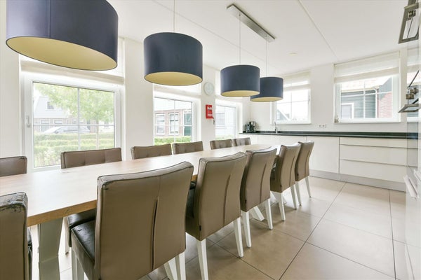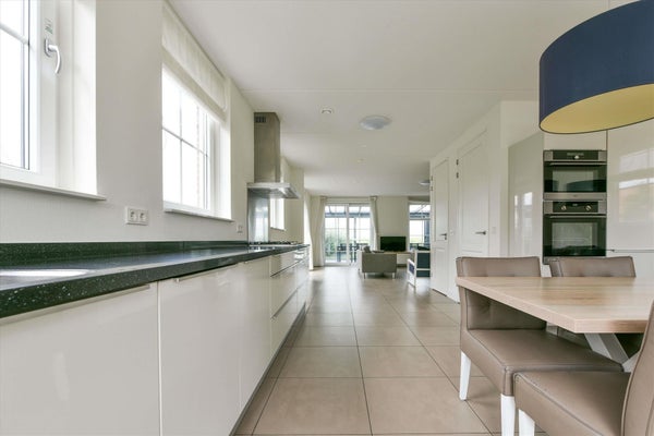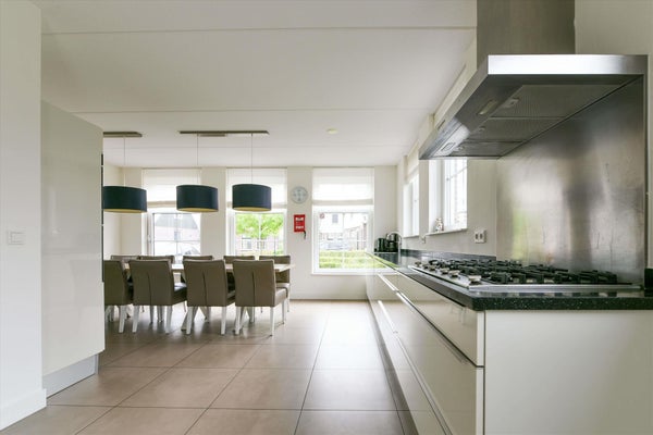 De ruime entree leidt naar een sfeervolle living met grote raampartijen die zorgen voor een overvloed aan natuurlijk licht en een adembenemend uitzicht op het water. De moderne, volledig uitgeruste keuken nodigt uit tot culinaire avonturen, terwijl de gezellige eethoek perfect is voor lange, gezellige diners met familie en vrienden. Op de begane grond is er één slaapkamer met twee boxsprings, een kast en een badkamer ensuite met inloopdouche en wastafel. Het toilet is separaat. Op de verdieping bereik je via de royale overloop de andere vijf slaapkamers, ieder met twee boxsprings en vier met kast. Ook zijn hier een tweede badkamer met inloopdouche, wastafel en toilet en een derde badkamer met ligbad, wastafel, toilet en wasmachine aansluiting. De woning biedt voldoende opslagruimte middels meerdere bergkasten. Wat een fijne plek voor grote gezelschappen! Een bijzonder detail van deze woning is de "eigenarenkast" op zolder. Dit biedt een handige oplossing voor eigenaren die de woning willen verhuren, maar ook zelf regelmatig willen gebruiken. Je kunt hier persoonlijke spullen veilig opbergen, wat het verhuurproces vereenvoudigt.