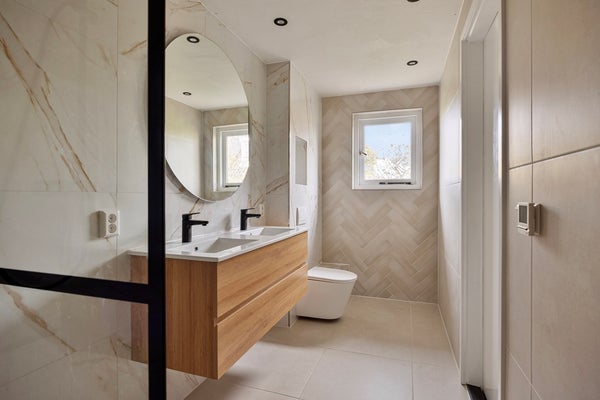 Zodra je binnenstapt, voel je de sfeer. De ruime woonkamer is een heerlijke leefruimte met een elegante visgraatvloer met vloerverwarming, grote ramen en een prettige lichtinval. De open keuken vormt het hart van het huis, modern, praktisch en uitnodigend. Met zijn moderne apparatuur, royaal werkblad en veel kastruimte is dit dé plek waar koken en samenzijn moeiteloos samengaan. In de toiletruimte zit elektrische vloerverwarming.