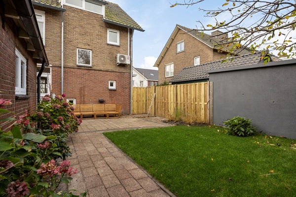 Buiten biedt de woning alles wat je nodig hebt voor praktisch woongenot: een garage met extra bergruimte, een oprit met parkeergelegenheid op eigen terrein en een fijne tuin waar je in alle rust kunt genieten van de zon of samen kunt eten op zomeravonden.