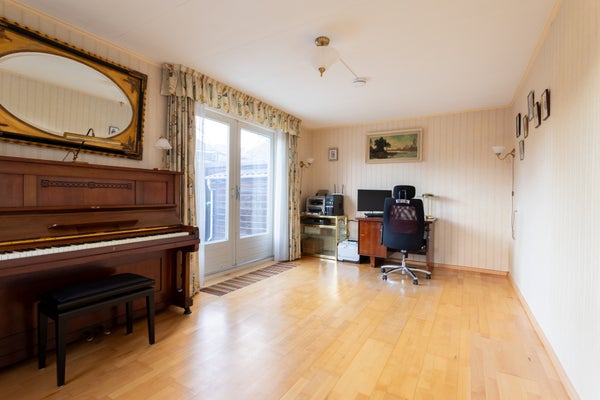 De indeling biedt een ruime entree naar de woonkamer en een open keuken. Aan de achterzijde bevindt zich een extra kamer, ideaal als werkruimte of slaapkamer. Op de eerste verdieping zijn drie goed bemeten slaapkamers en een royale badkamer. De tweede verdieping heeft een grote voorzolder en een vierde slaapkamer met een dakkapel, met mogelijkheden om extra slaapkamers te creëren.