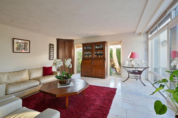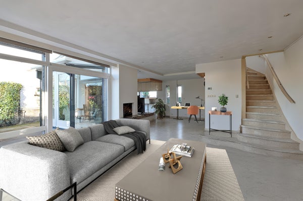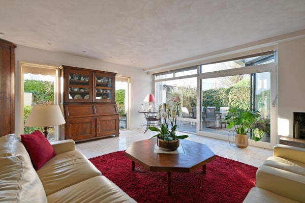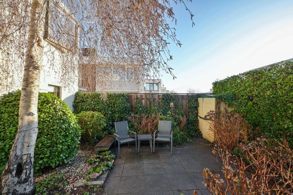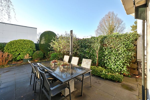 Op de eerste verdieping zijn twee slaapkamers en een badkamer met ligbad, douche en dubbele wastafel te vinden. Bovendien is er een aparte wasruimte en veel kasten. De tuin biedt privacy met terrassen en groenblijvende struiken. Er is een garage op 30 meter afstand te koop. Het huis ligt in een rustige buurt met gratis parkeren voor de deur en dichtbij voorzieningen. De vraagprijs bedraagt € 625.000,-.