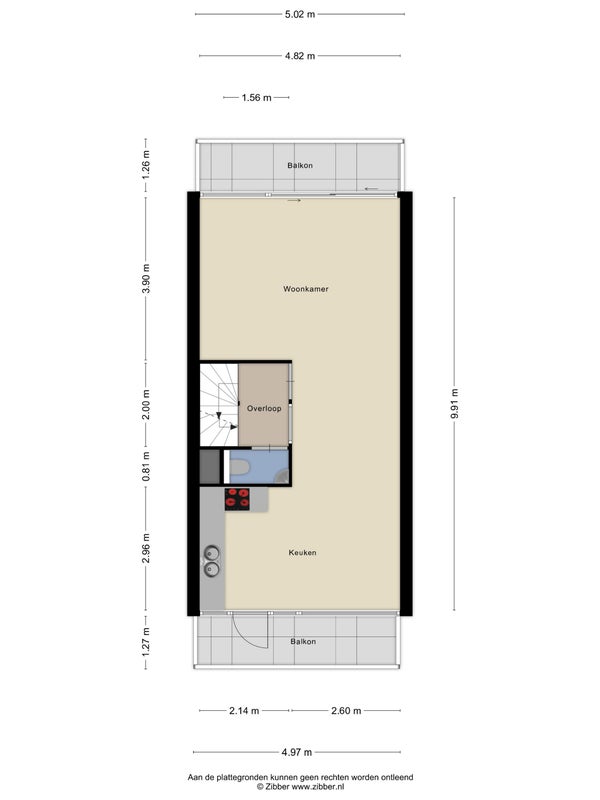 - Aanwezig (67 m², gelegen op het zuidwesten)