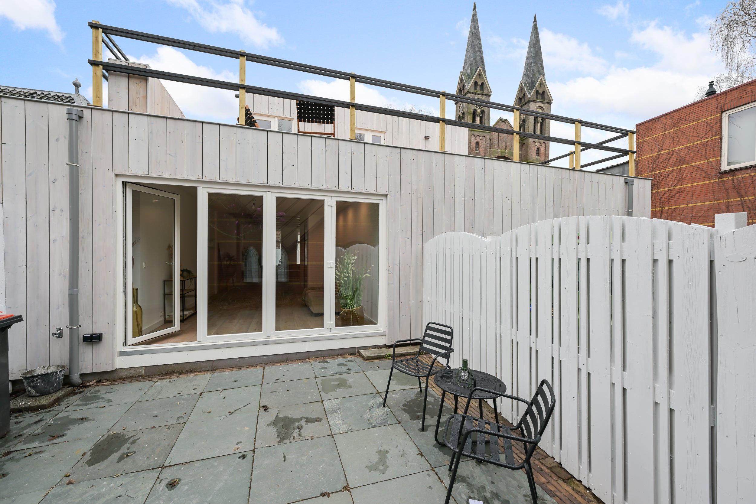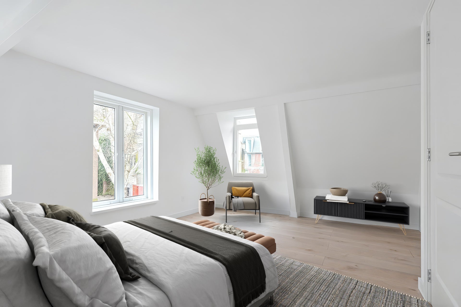 De gloednieuwe woonkeuken, uitgerust met diverse kookgemakken, grenst aan de zitkamer. Aan de achterzijde bevindt zich een ruime kamer met dakkoepel, ideaal voor verschillende doeleinden. Op de eerste verdieping vind je drie slaapkamers en een luxe badkamer met een inloopdouche en ligbad. Het royale dakterras biedt mogelijkheden voor ontspanning.