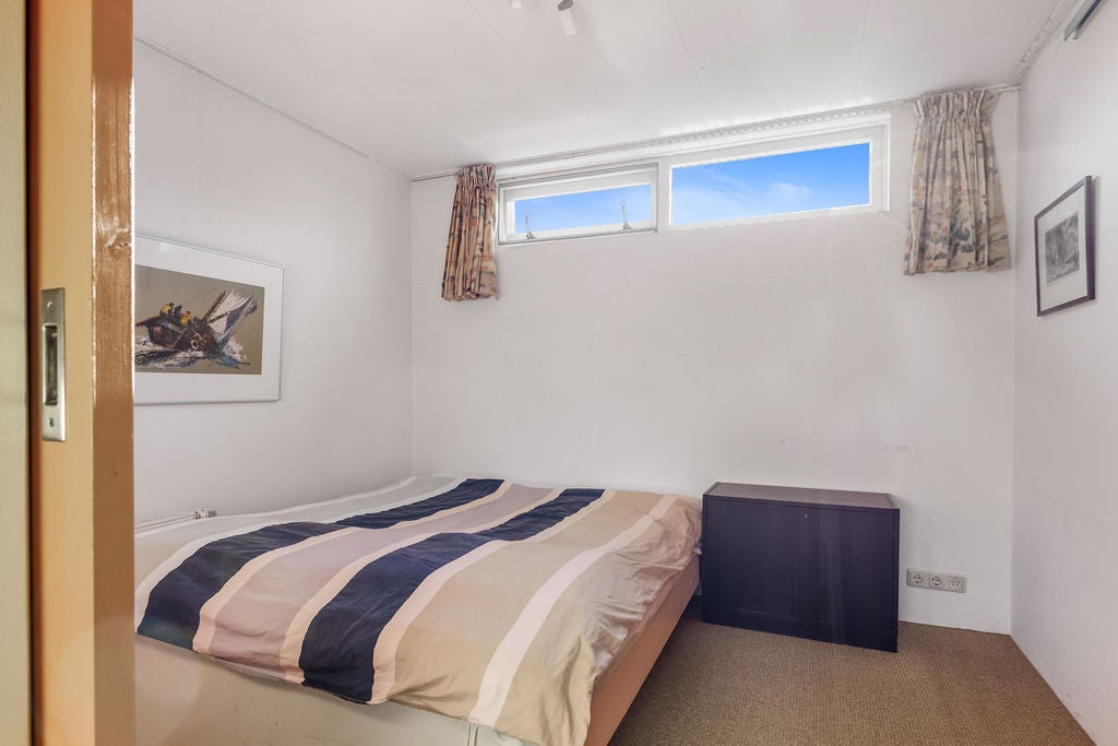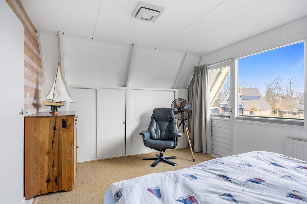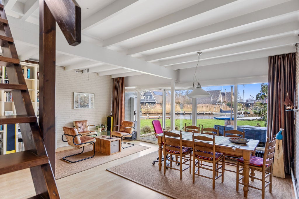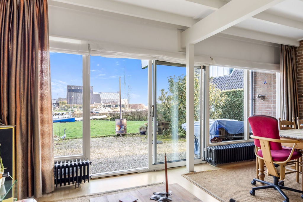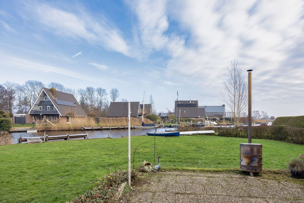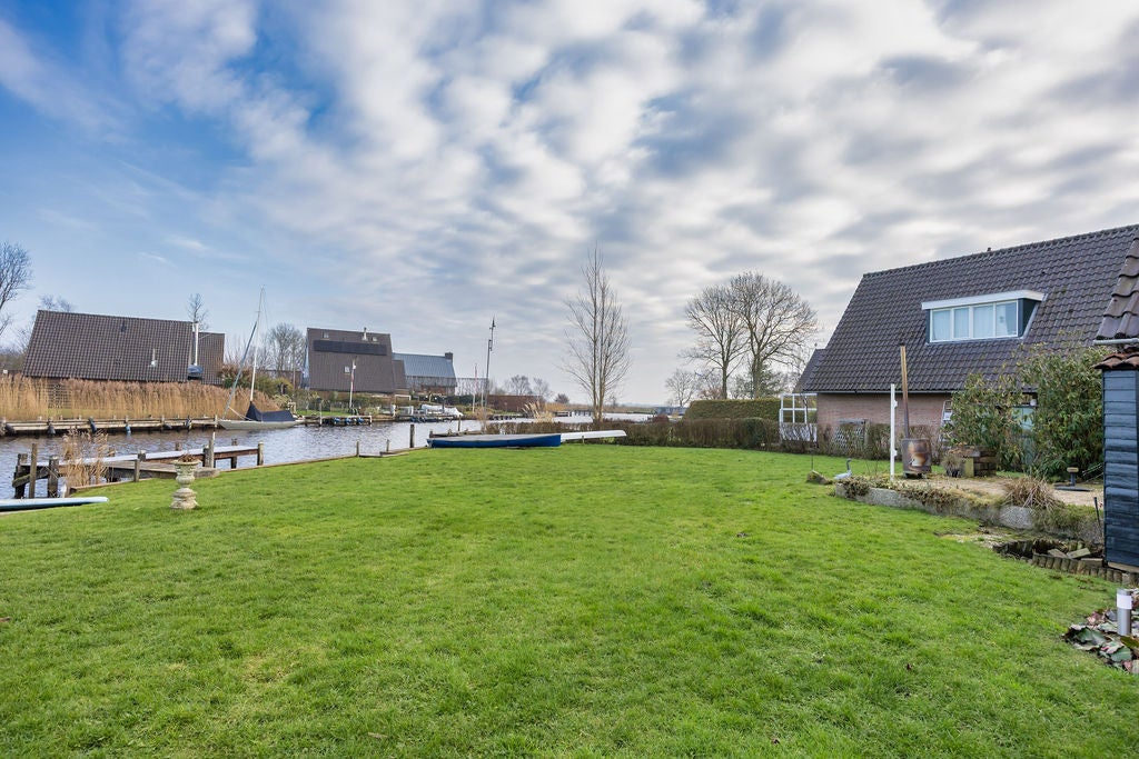 Deze geschakelde vrijstaande woning, gelegen op een riant perceel van 633m2 aan open vaarwater, biedt een unieke levensstijl met zowel permanente als recreatieve bewoning. De woning beschikt over een eigen aanlegsteiger van ca. 20m en is eenvoudig bereikbaar naar het Sneekermeer zonder onderbrekingen. Binnen vind je een ruime woonkamer van ca. 34m2 met een open keuken, een slaapkamer en een modern ingerichte badkamer op de begane grond, perfect voor levensloopbestendig wonen. De eerste verdieping heeft nog drie slaapkamers, inclusief een ruime loggia. De aangename achtertuin met terras biedt privacy en ruimte om te genieten van de zon. Extra te noemen zijn de berging van ca. 10m2 en een souterrain voor opslag of hobby. Met energielabel C en zonnepanelen is het huis ook duurzaam.