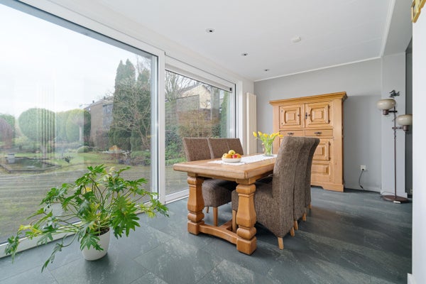 De woning beschikt over een verzorgde, groene voor- en achtertuin. De achtertuin is ingericht met een diverse terrassen, gazon en een sfeervolle vijverpartij, waardoor u hier in alle rust kunt genieten van het buitenleven.