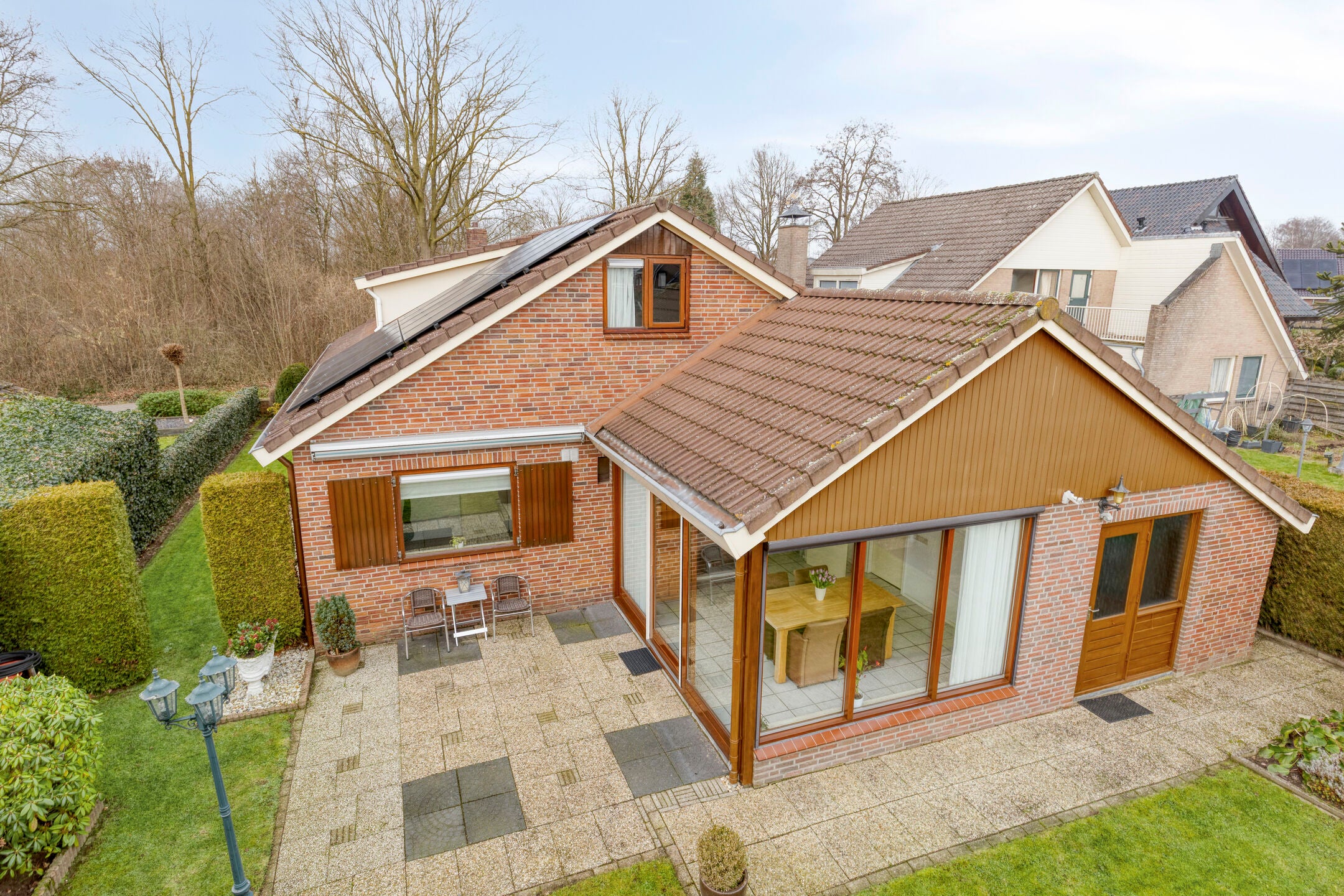 Zeskamp 20 in Ulft is een vrijstaande woning met een rustige, groene uitstraling. De 203 m² grote woning biedt ruimte, licht en een solide basis. De verzorgde voortuin leidt naar een ruime hal die toegang geeft tot de leefruimtes. De royale woonkamer is licht en heeft een open haard, terwijl de keuken, hoewel verouderd, veel potentieel heeft. Een praktische bijkeuken en een grote serre met verbinding naar de achtertuin maken het geheel compleet. Op de begane grond bevinden zich een slaapkamer en een badkamer, wat de levensloopbestendigheid vergroot. De eerste verdieping heeft twee goed verlichte slaapkamers en extra bergruimte. De royale, groene tuin rondom biedt privacy en weet zowel zon als schaduw te bieden. Deze woning, met inpandige garage en zonnepanelen, herbergt veel mogelijkheden voor degene die het wil moderniseren.