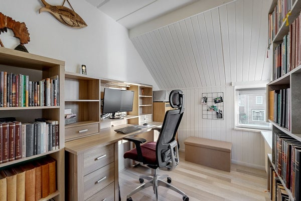 Tweede verdieping: Vaste trap naar de zolder waar nog eens twee extra slaapkamers zijn gerealiseerd, ideaal als tienerkamers of hobbyruimte.