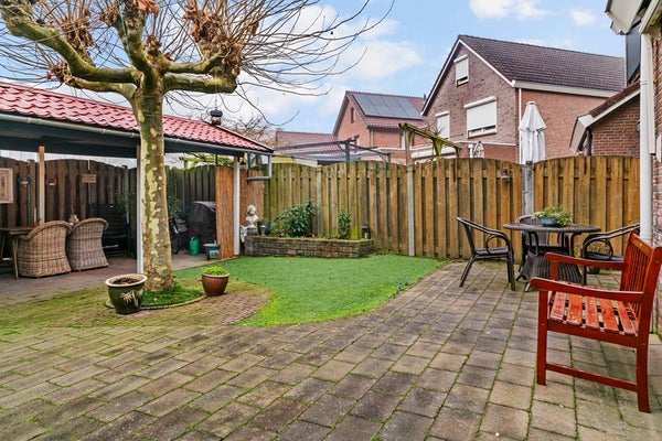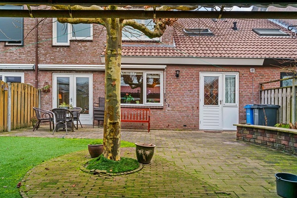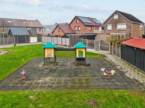 De achtertuin ligt op het zuidwesten en biedt met een perceeloppervlakte van 226 m² volop ruimte om te genieten van het buitenleven. Extra aantrekkelijk is het speeltuintje direct achter de woning, wat deze plek bijzonder geschikt maakt voor gezinnen met kinderen.