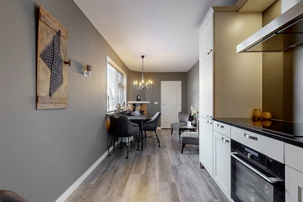 Binnen is de grote blikvanger de geheel vernieuwde keuken uit 2022. Deze moderne keuken is van alle gemakken voorzien en vormt het hart van de begane grond. De indeling van de woning is praktisch en biedt voldoende ruimte voor het hele gezin.
