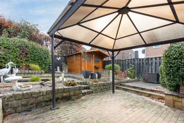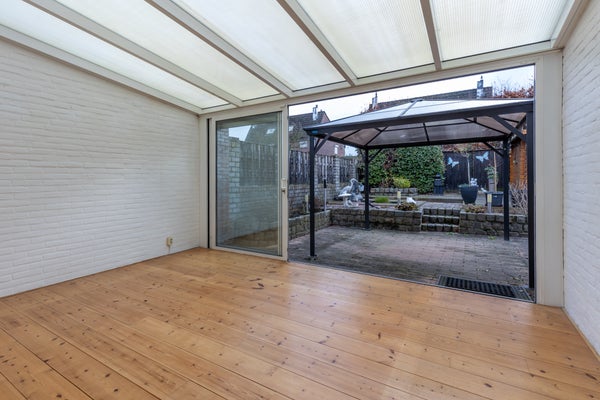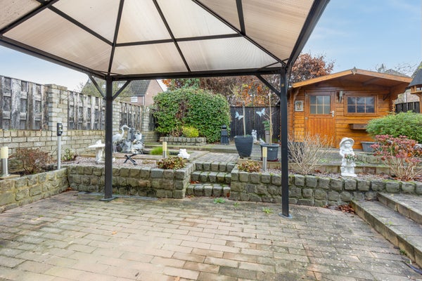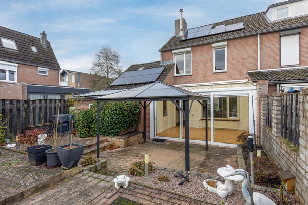 Deze goed onderhouden gezinswoning in Berg aan de Maas biedt veel ruimte met vier slaapkamers, een vaste trap naar de tweede verdieping en een aanbouw. De woning bevindt zich in een kindvriendelijke buurt. Op de begane grond is er een ruime oprit voor twee auto’s en een overdekte entree. De woonkamer is Z-vormig en heeft een houten vloer, airco en een allesbrander. De halfopen keuken is uitgerust met moderne inbouwapparatuur. De aanbouw, of tuinkamer, biedt verwarmde ruimte met dubbele schuifpui naar de tuin. De garage beschikt over een vliering en wateraansluiting. Op de eerste verdieping zijn er drie slaapkamers en een L-vormige badkamer met ligbad en douche. De tweede verdieping herbergt een vierde slaapkamer en extra bergruimte. De tuin is onderhoudsarm en voorzien van een paviljoen.