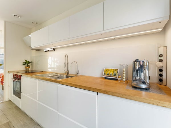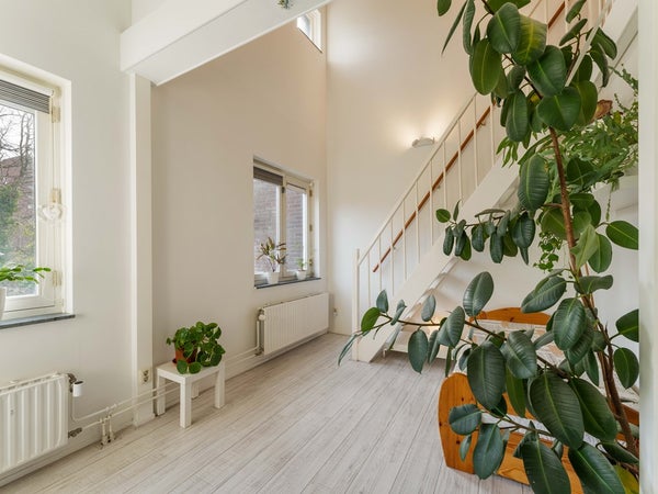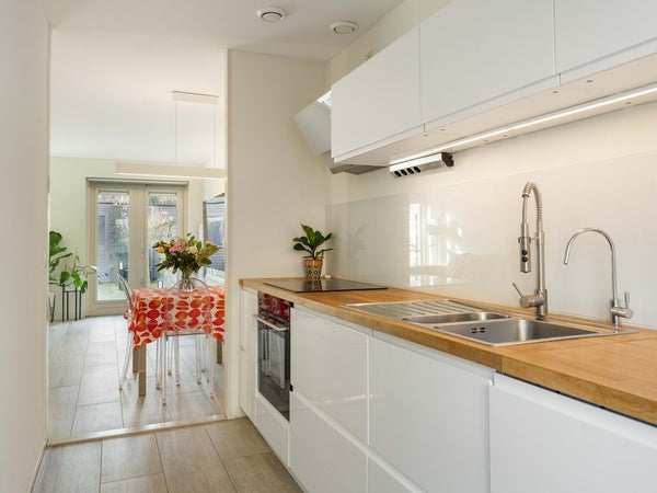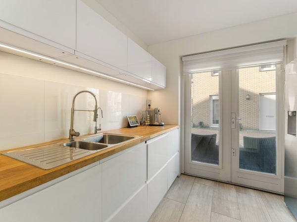 Bij binnenkomst kom je in een ruime entree met toegang tot het toilet en de woonkamer. De woonkamer is prettig van formaat en vormt samen met de keuken een fijne leefruimte. De keuken is ruim opgezet en bereikbaar vanuit de woonkamer. Dankzij de openslaande deuren aan de voorzijde, richting het hofje, is er veel lichtinval. De keuken is voorzien van een vaatwasser, inductiekookplaat, afzuigkap en een vrijstaande koelkast.