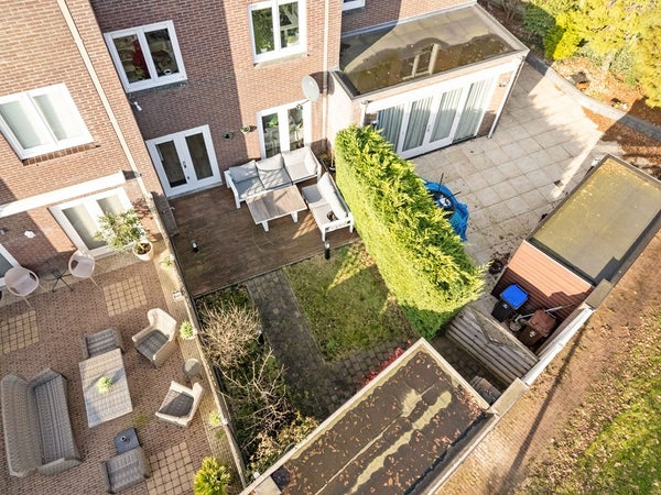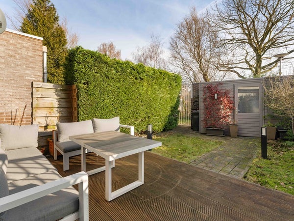 Via de woonkamer bereik je de achtertuin, die is gelegen op het oosten tot zuidoosten. De tuin is ruim opgezet, waardoor je hier op verschillende momenten van de dag van de zon kunt genieten. Er is voldoende ruimte voor een eettafel en een loungehoek. Achter in de tuin bevindt zich een externe berging, ideaal voor fietsen en extra opslag.