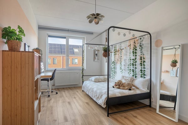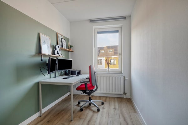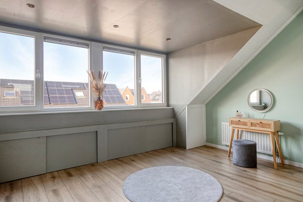 En dan de kers op de taart: de zolderverdieping, uitgerust met een royale vierde slaapkamer met dakkapel. Zin in een thuiskantoor, game room of mooie logeerkamer? Alles kan! Verder vind je op deze etage een praktische wasruimte, keurig weggewerkt en mét extra opbergruimte, zodat het huishouden als vanzelf loopt.