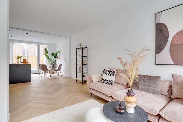 - De tussenwoning heeft een woonoppervlakte van 107 m² en beschikt over 5 kamers, waarvan 4 slaapkamers;
