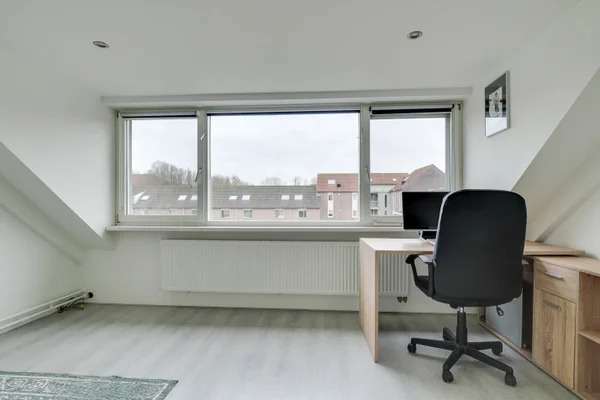 De eerste verdieping heeft twee ruime slaapkamers en een modern uitgeruste badkamer met ligbad en inloopdouche. Op de tweede verdieping zijn nog twee kamers aanwezig, één als slaapkamer en de ander als werk/hobbyruimte. De woning beschikt verder over 9 zonnepanelen, een goede isolatie en een vrijstaande berging met elektra. Parkeren is gemakkelijk in de omgeving.
