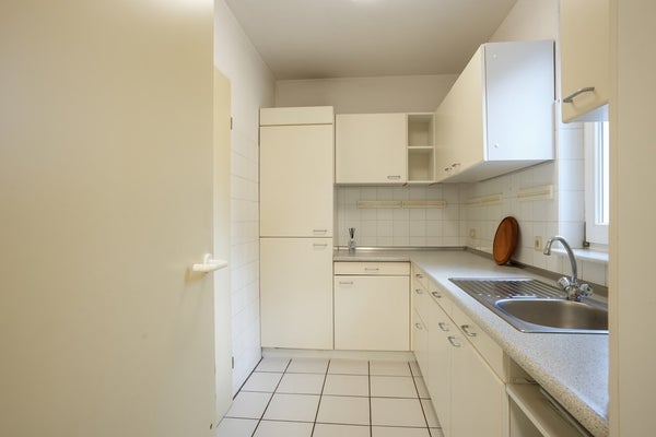 De bijkeuken (ca. 5,8 m²) beschikt over een wasbak en opstelplaatsen voor een koelkast en vriezer.