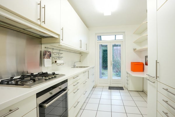 De gesloten keuken (ca. 8,5 m²) is voorzien van diverse inbouwapparatuur, waaronder een oven, afzuigkap, koelkast en een 4-pits gasfornuis. Een deel van de apparatuur is aan vervanging toe. Vanuit de keuken is er via een loopdeur directe toegang tot de tuin.