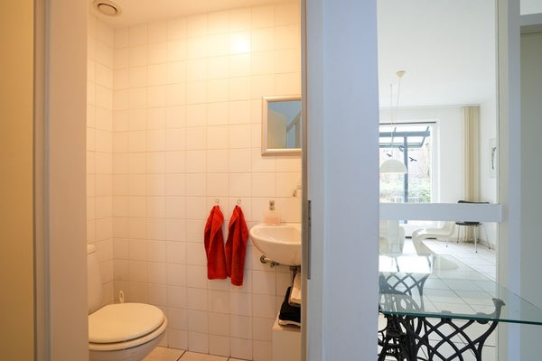 Het gastentoilet is eenvoudig uitgevoerd en voorzien van een fonteintje.